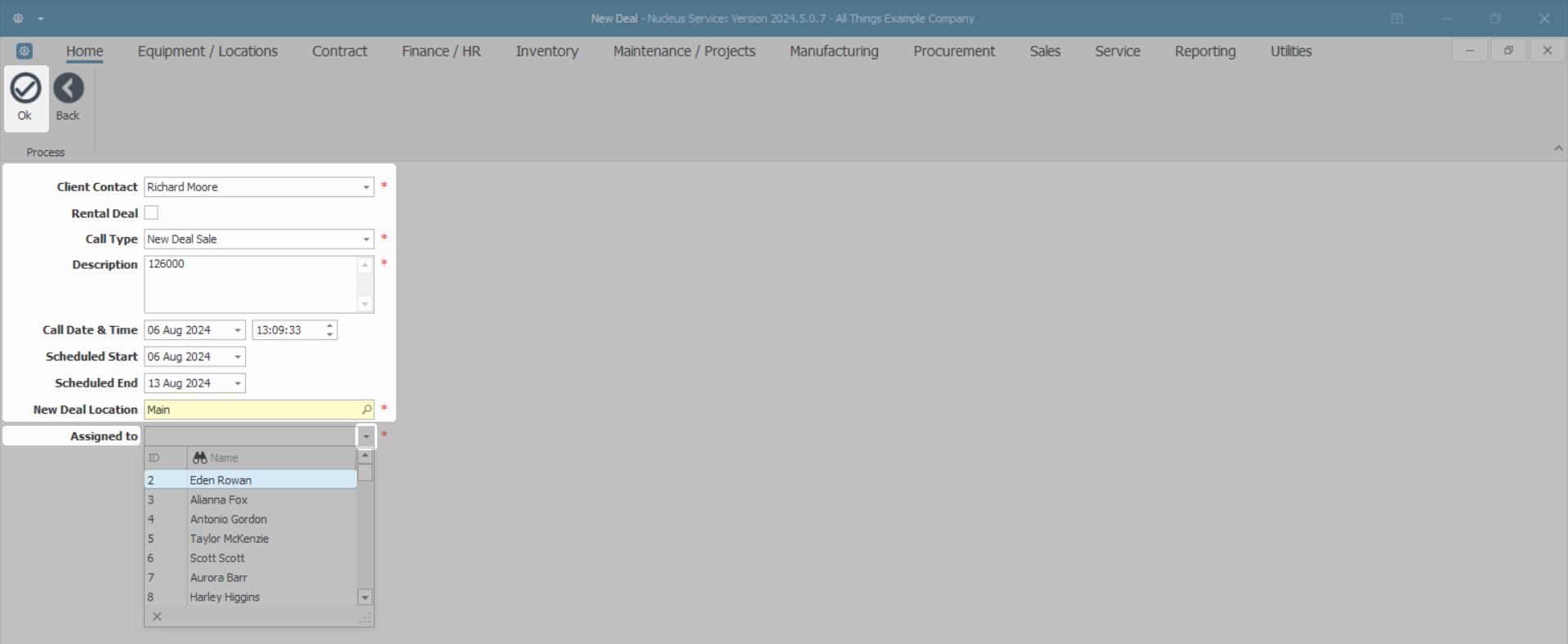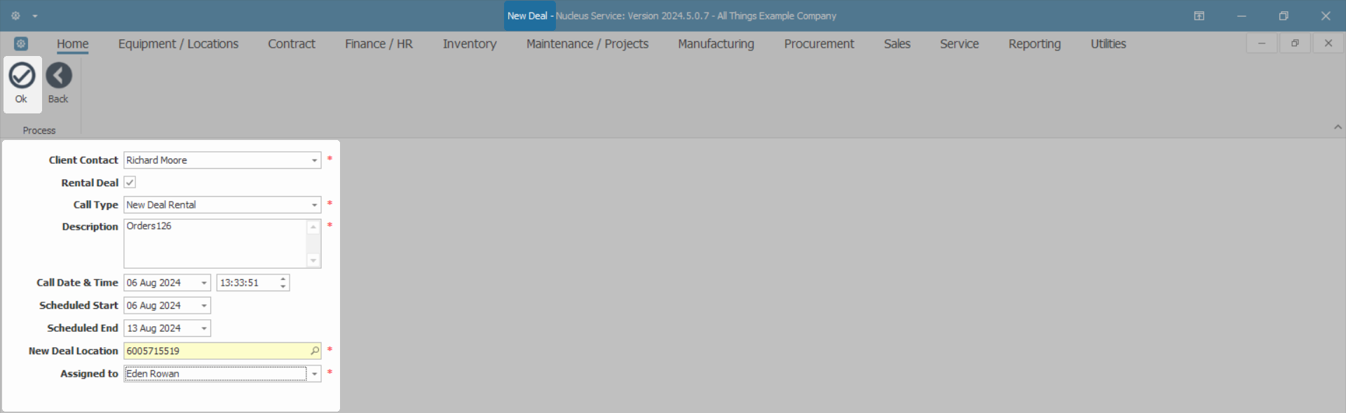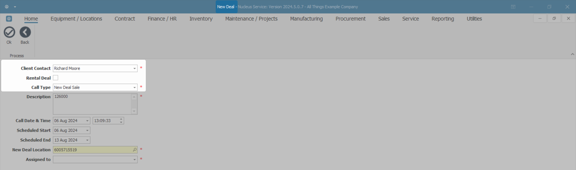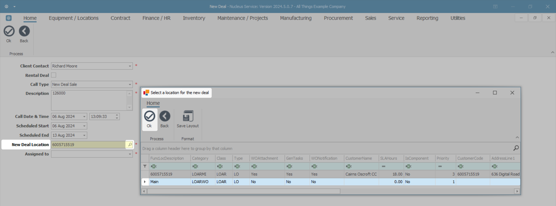- New Deal Location: The field will auto populate if a Functional Location has been set up. To select, or to change the location for the new deal,