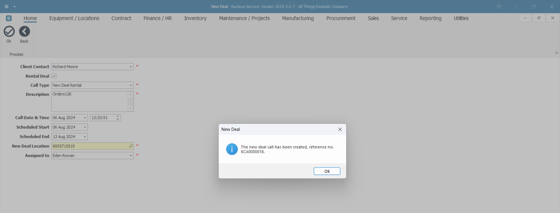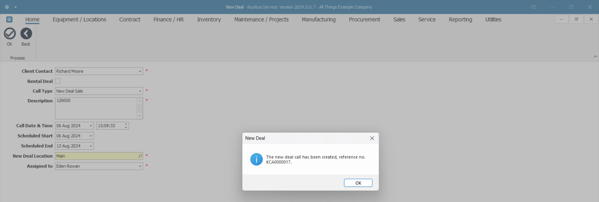 - The new deal call has been created, reference no. KCA [ ].