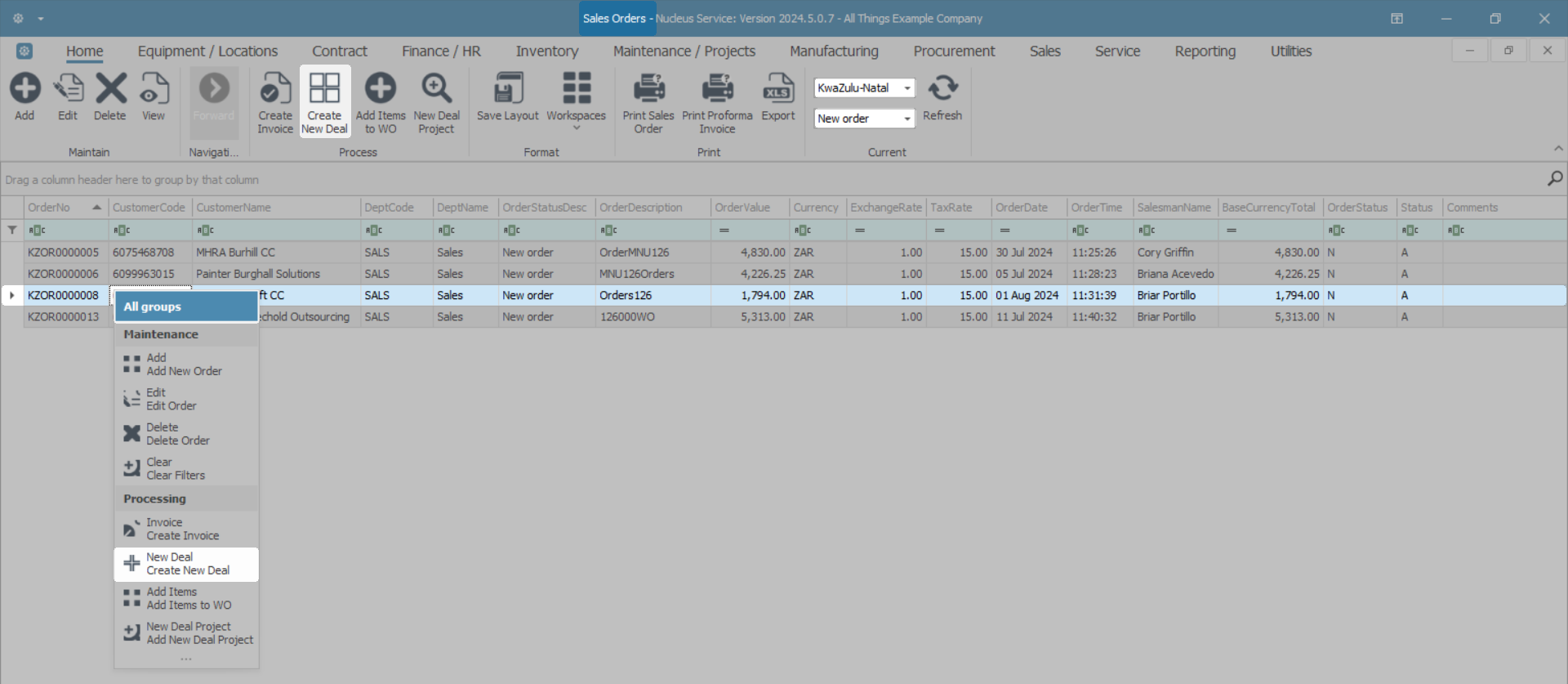 The Sales Order will no longer be available from the New Order Status list. To view: change the Status to the Invoiced Order Status on the Sales Orders listing screen. - The New Deal Sale has now been assigned to the Call Listing screen where it can be viewed.