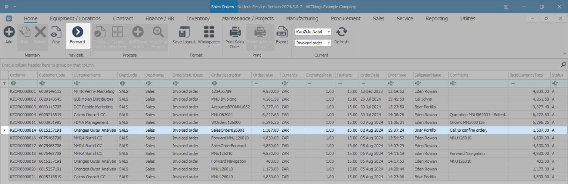 - The Sales Orders listing screen will be displayed.
