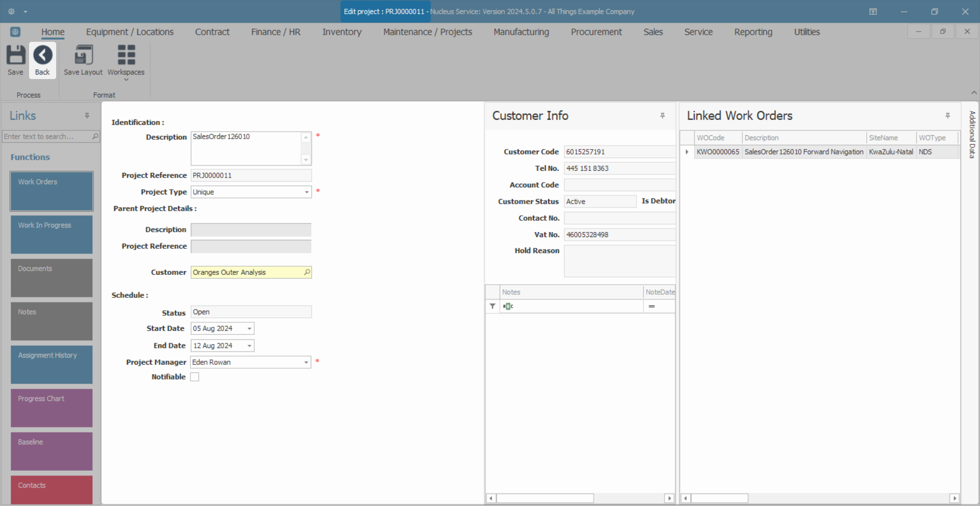 - The Edit project : PRJ [ ] screen will open as the selected Sales Order is linked to a Project.