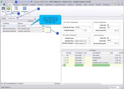 - Type "customer" in the Flag Description to display the Auto Customer Code and Customer Code Prefix flag values.