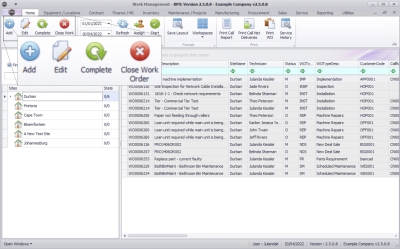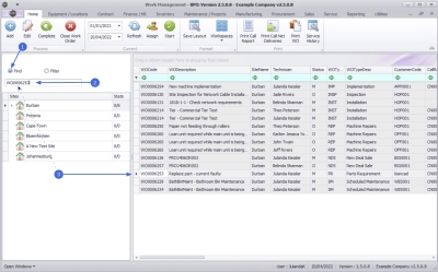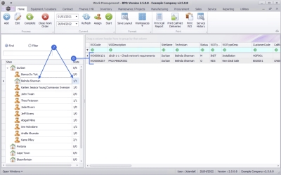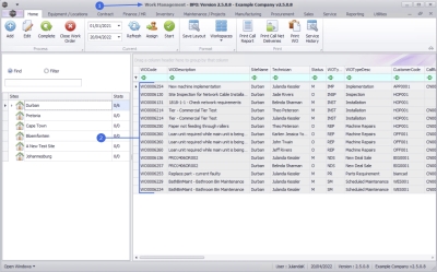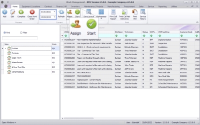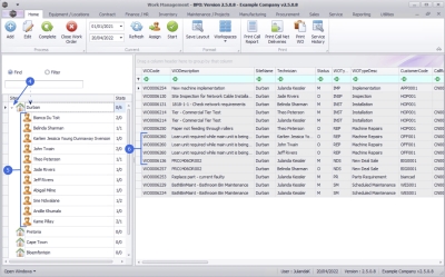 The Work Management screen is designed for Service and Technical Management to view, assign, complete and close work orders; and works much like the Call Centre screen.
