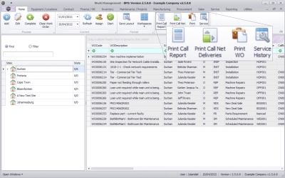 From the print buttons the Call Report , Call Net Deliveries, Work Order Report and Service History Report can be printed.
