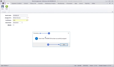 - Work Order: [work order number] has been successfully assigned.
