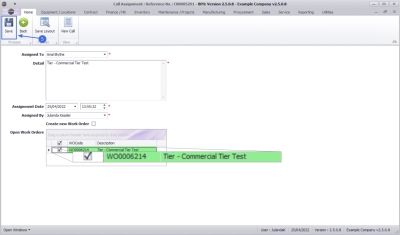 Create new Work Order: Click to select the check box to create a new Work Order if the technician needs to follow up on the same call, but for a different task. Make sure you also change the assignment detail accordingly.