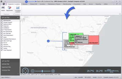 - The Open Calls Technician Map screen will be displayed.