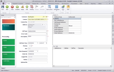 - The Call Reference has been auto populated with the Call Ref number selected.