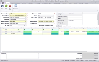 - The Add new Customer Invoice screen will display.