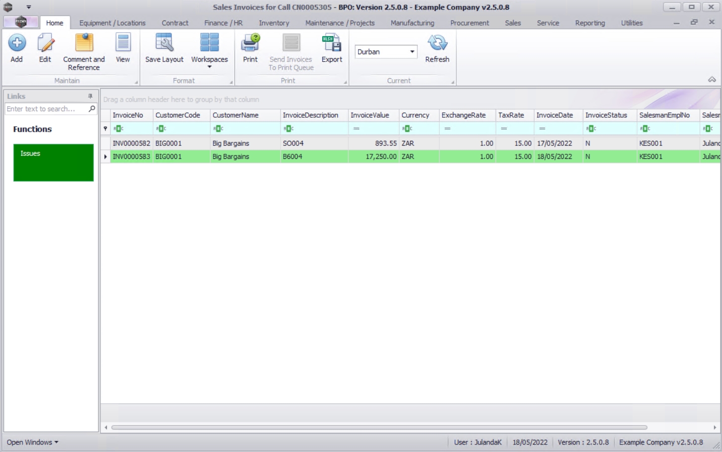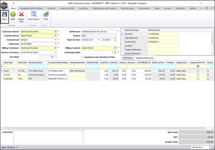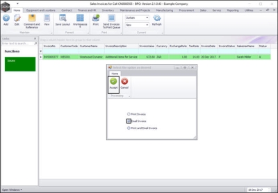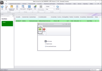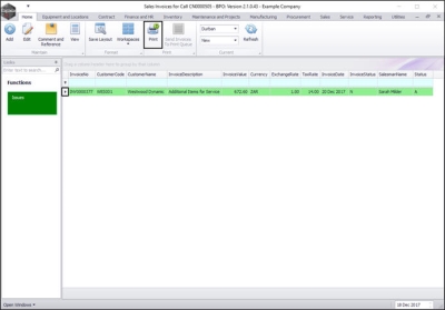 You will return to the Sales Invoices for Call [invoice number] screen where you can view the newly raised invoice.