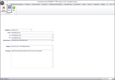 - When you have finished adding details to the Email Sales Invoice page, click on Save.