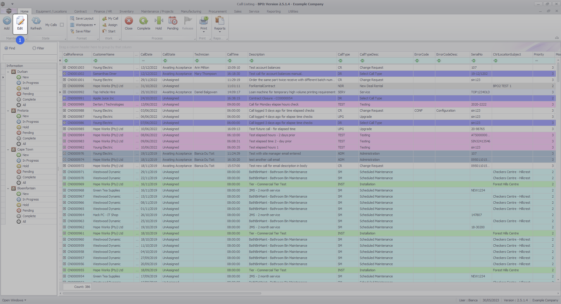 - Select the Call you wish to work with.