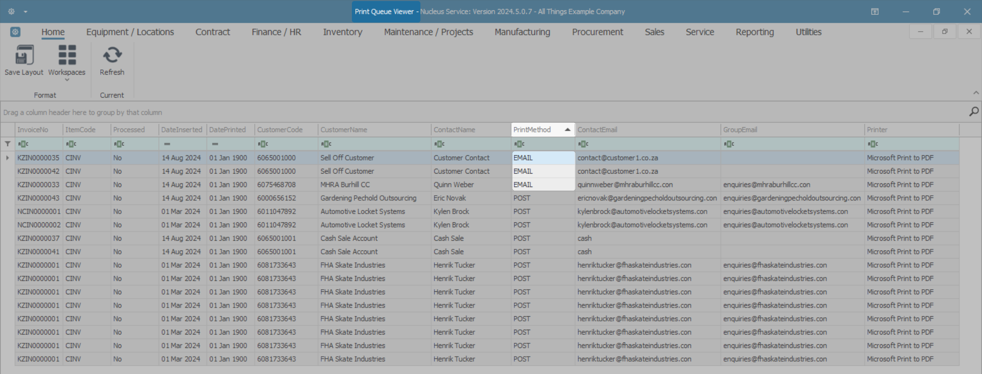 - Documents to be emailed will have EMAIL in the Print Method field with an email address.
