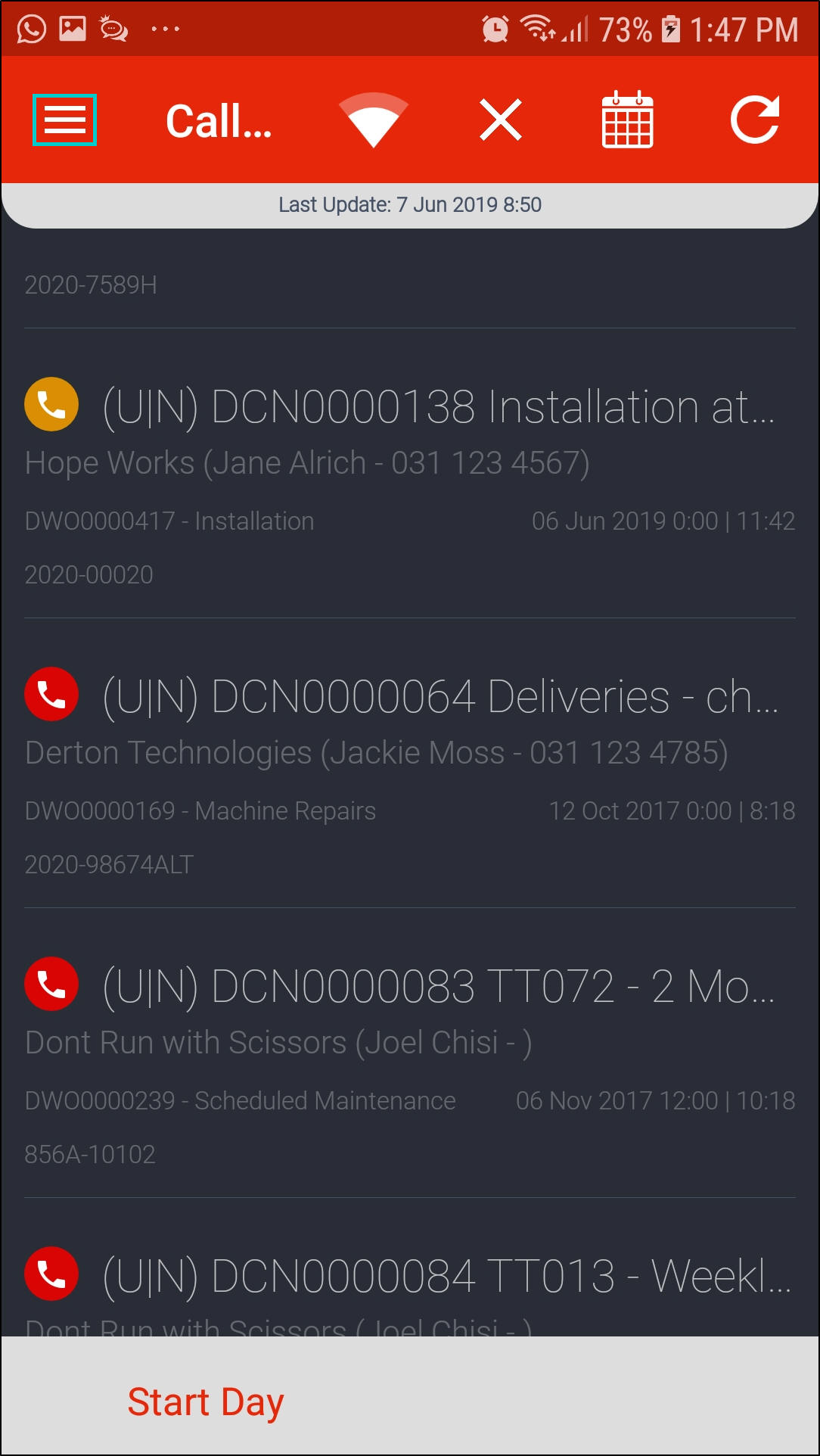 - Call [ ]: This will auto populate with the call number you are currently working on but you can change this by clicking on the down arrow and selecting a different call.