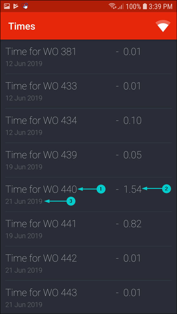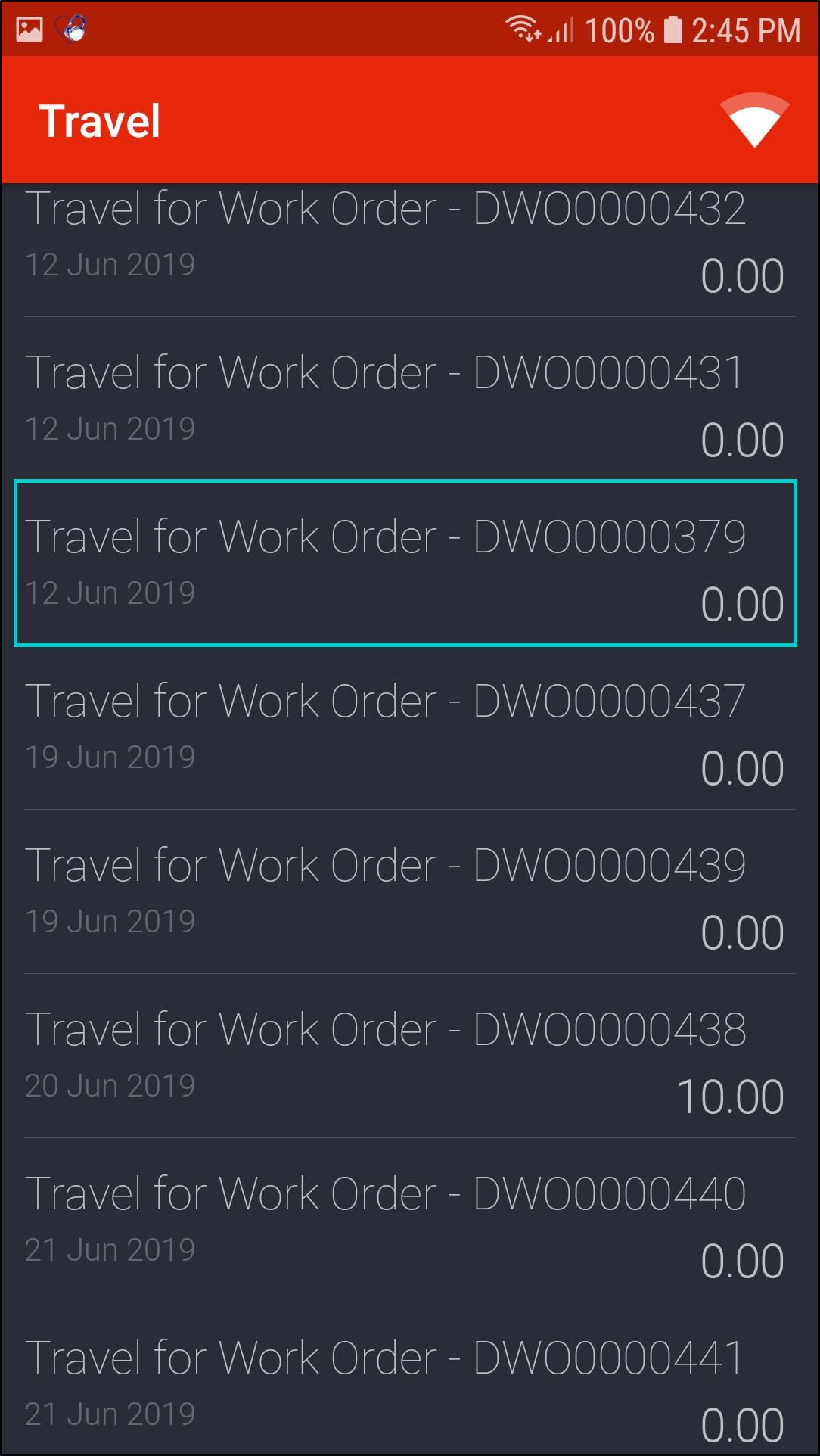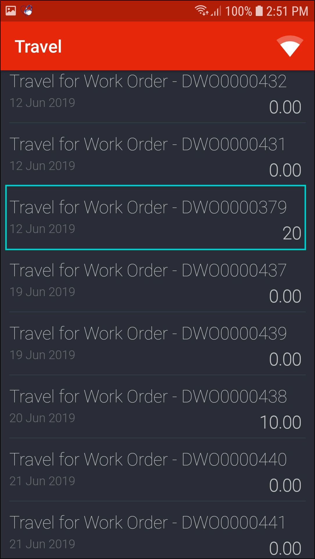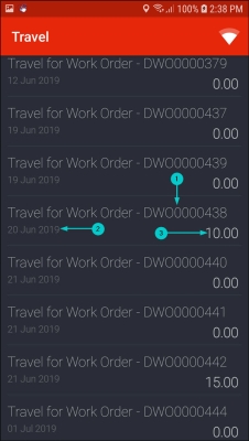 - A list of travel records for all your work orders will be displayed in this screen showing the;
