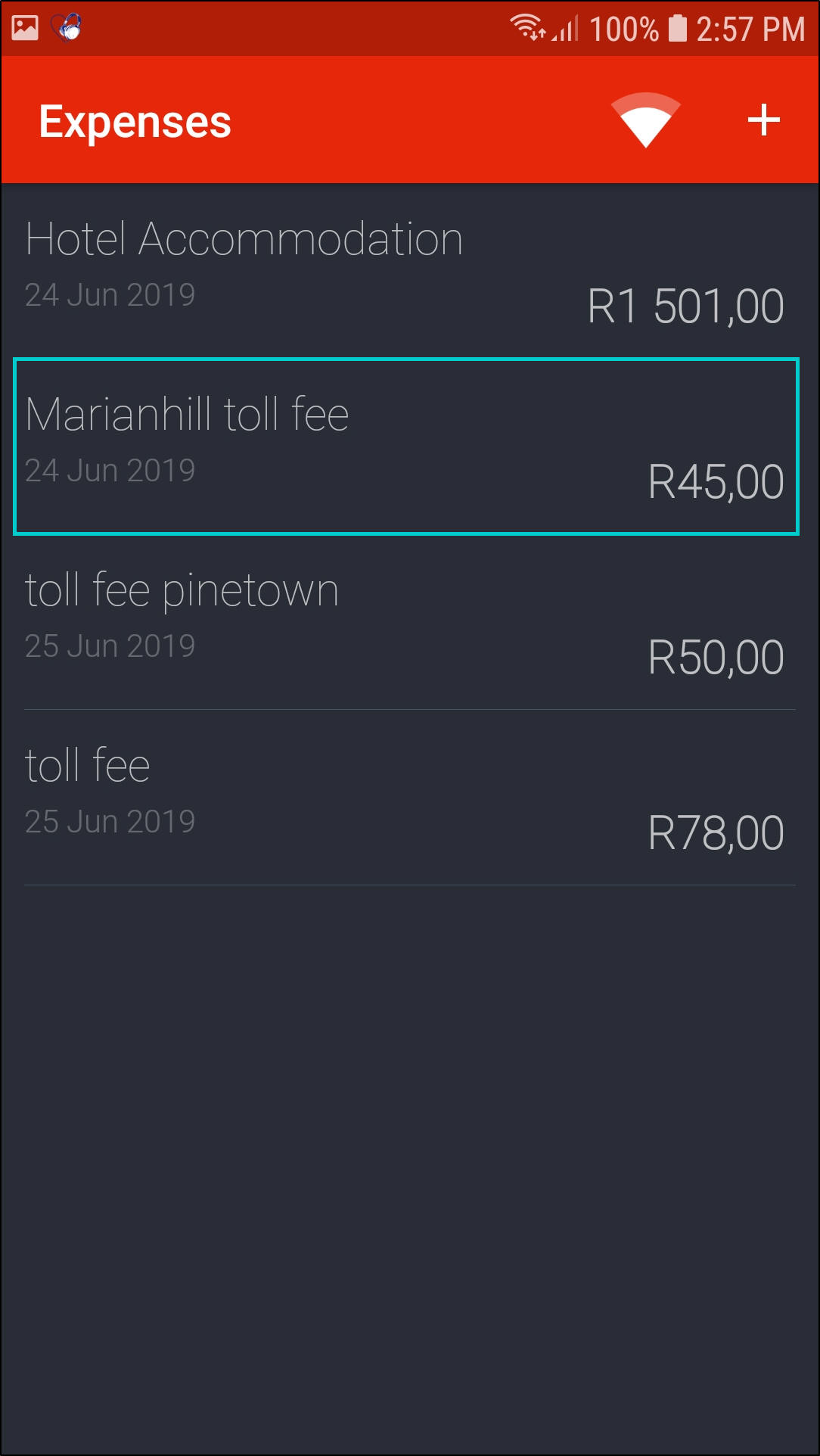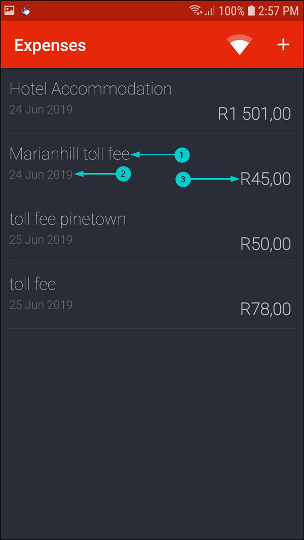 - Click on the '+' icon in the Expenses screen.