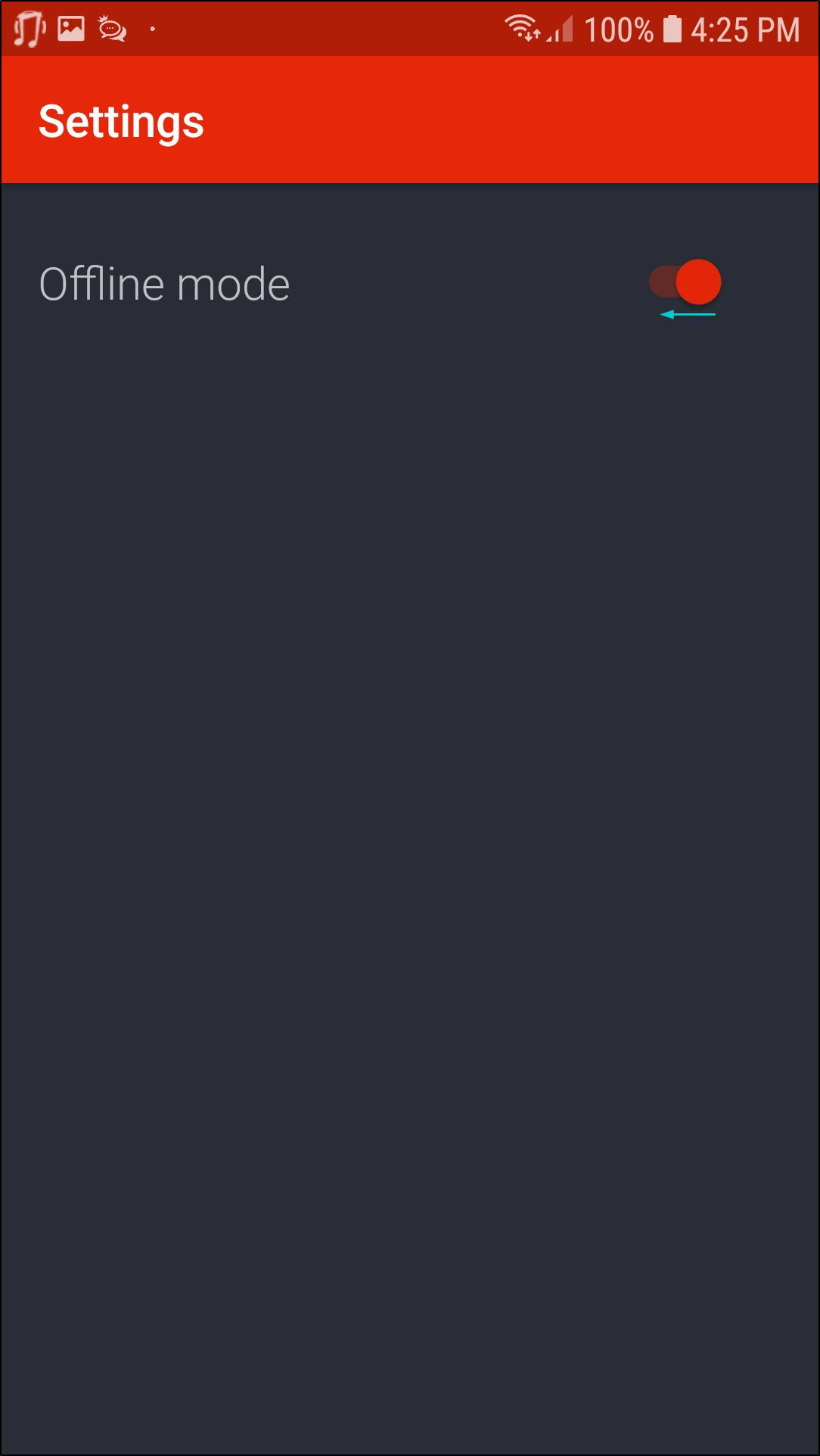 - To switch to Offline mode, move the Toggle button to your right.