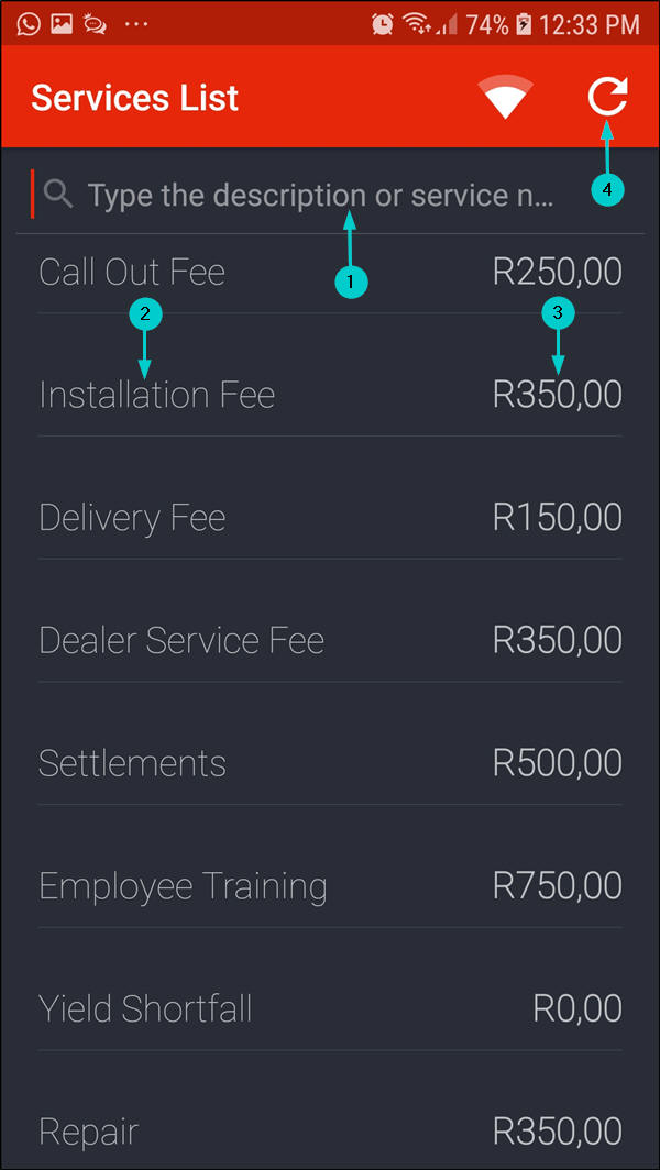 - In this image, the Installation Fee is now R400 after the services list information was updated.