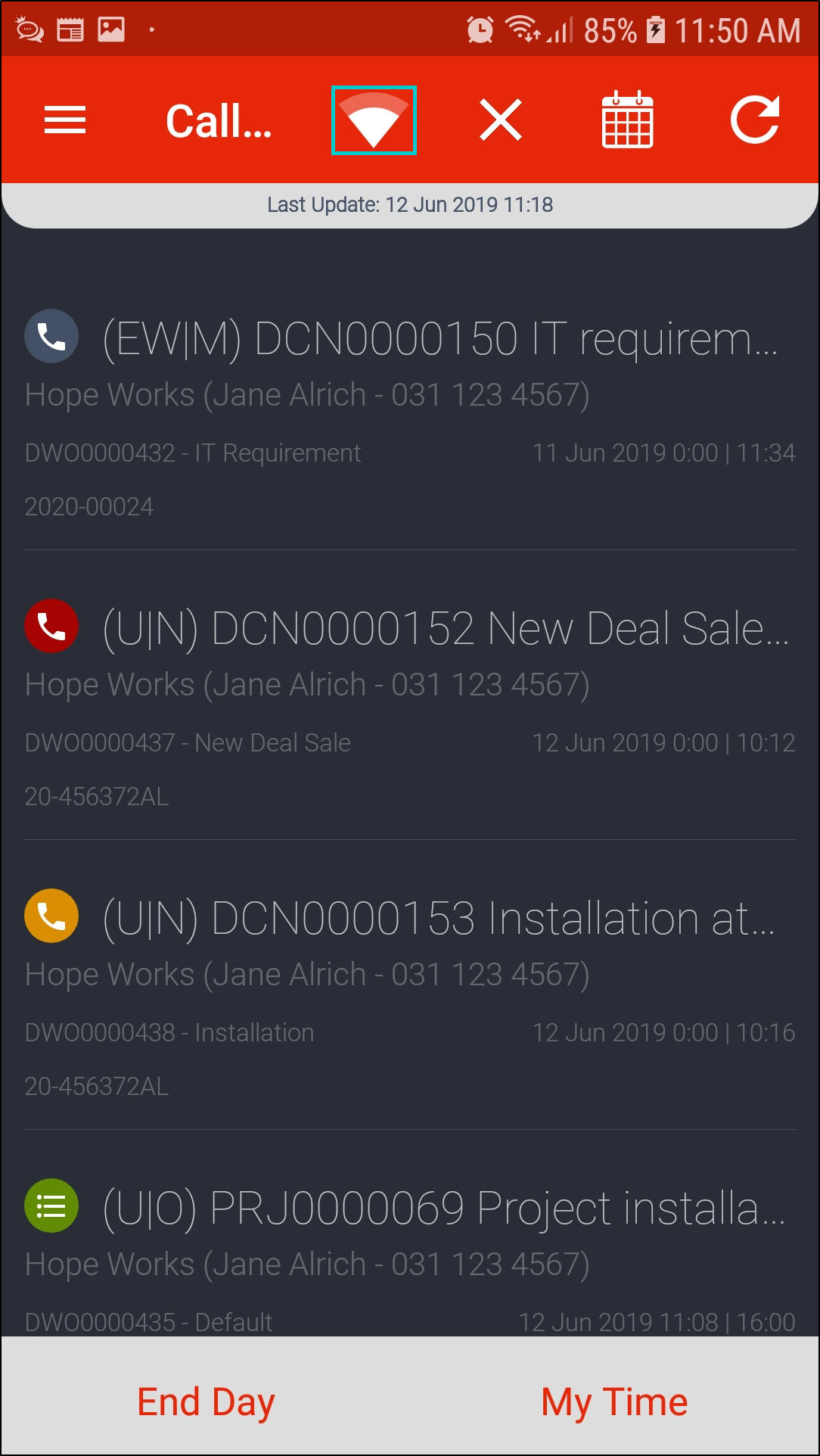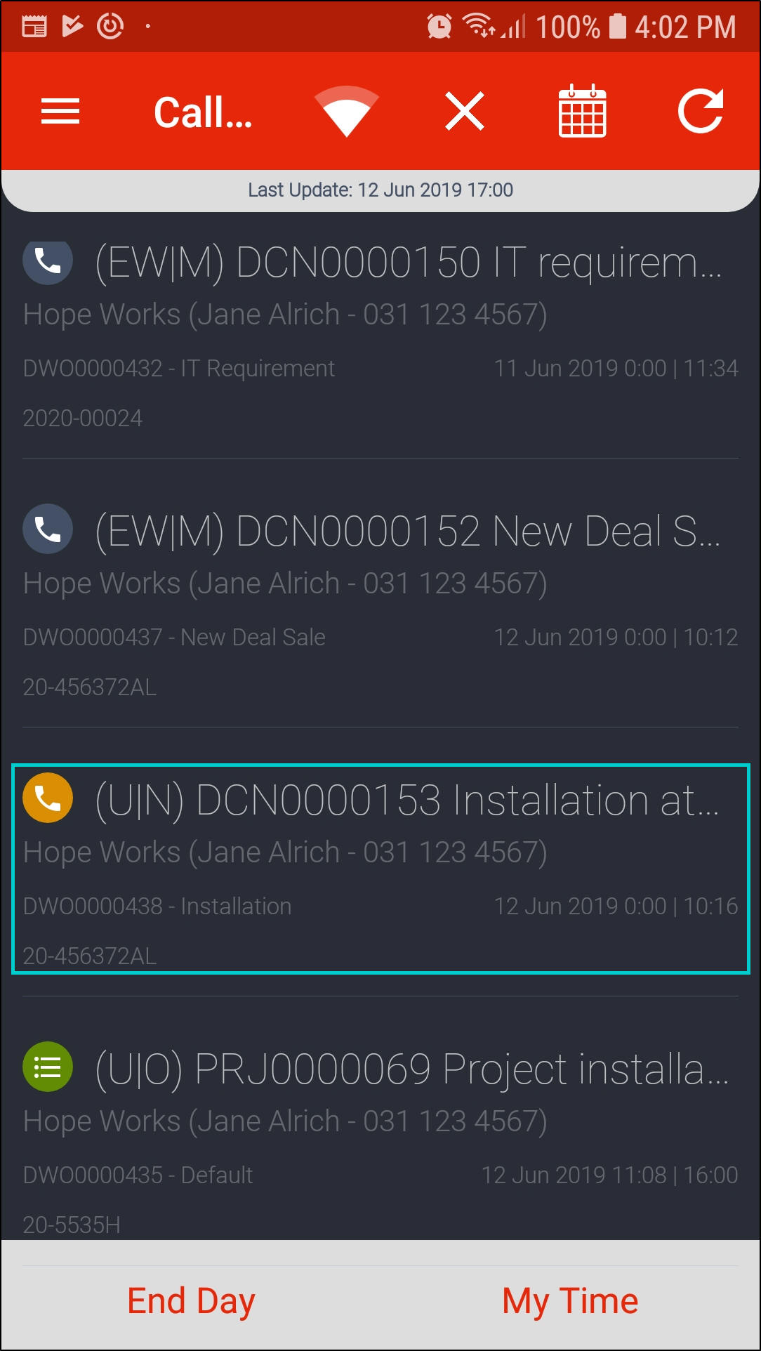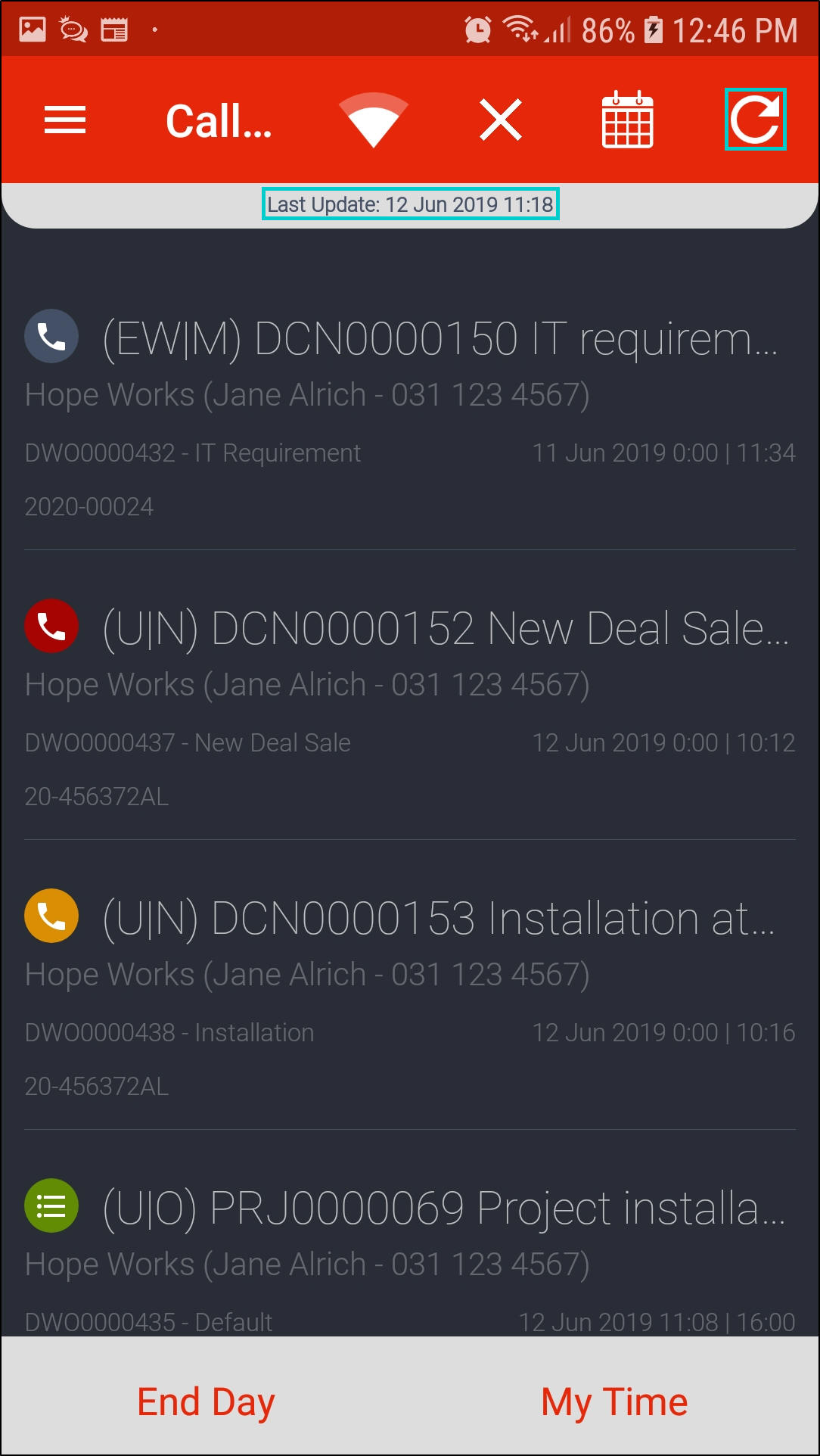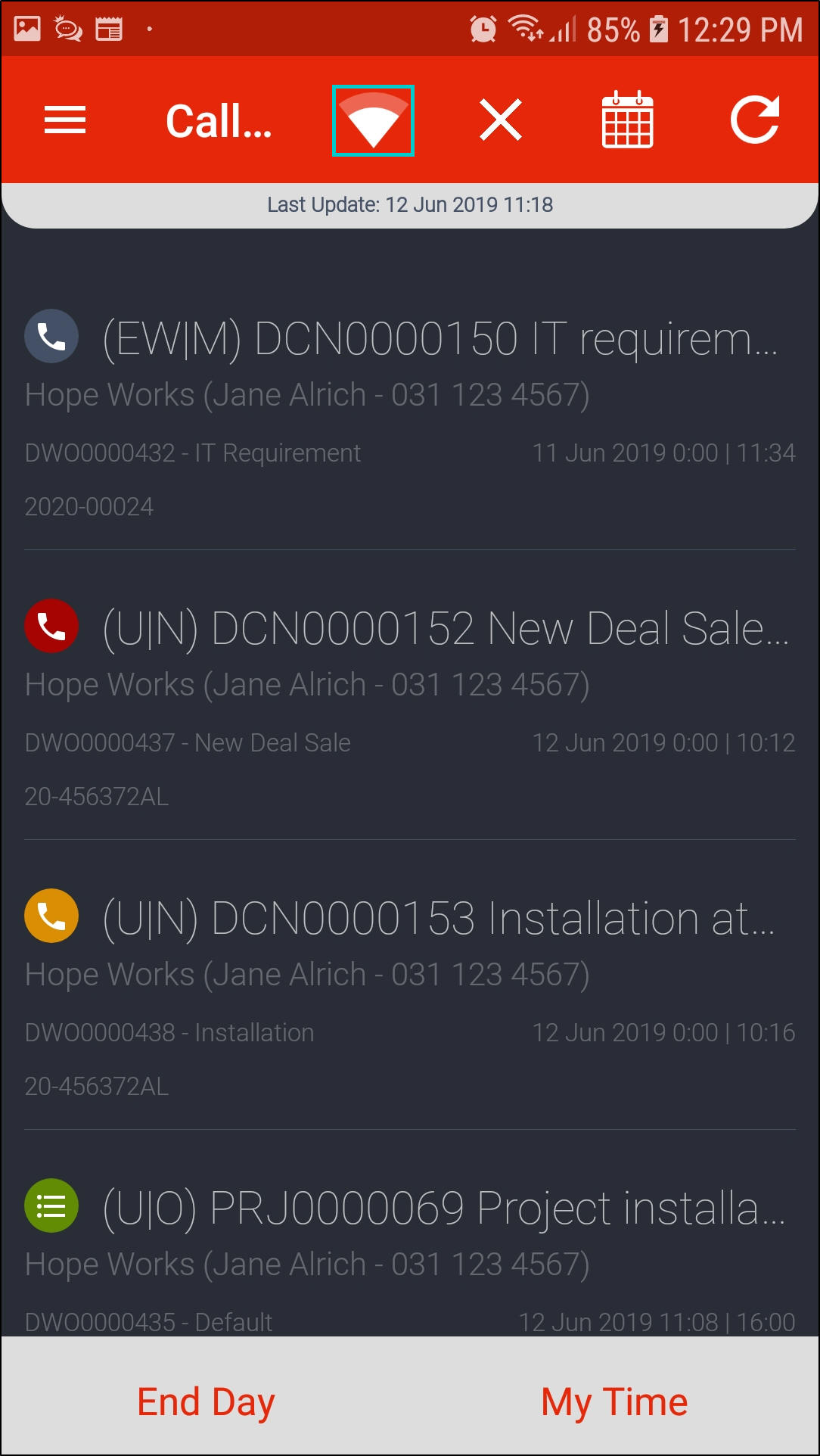 - Once all calls are done for the day, click on End Day.