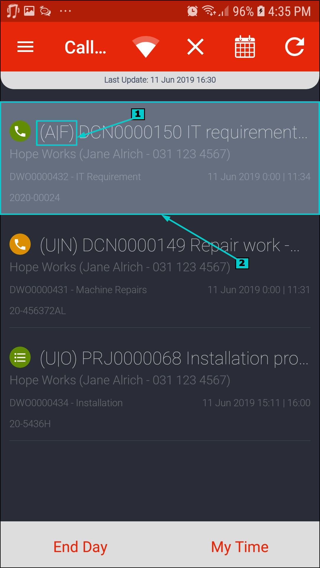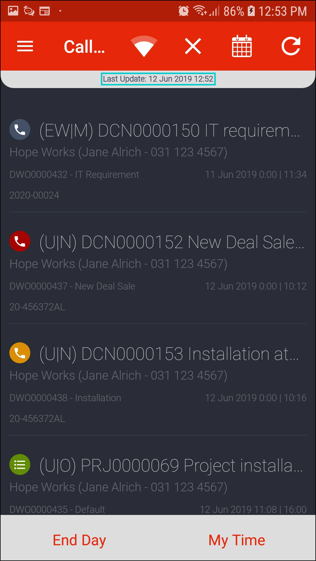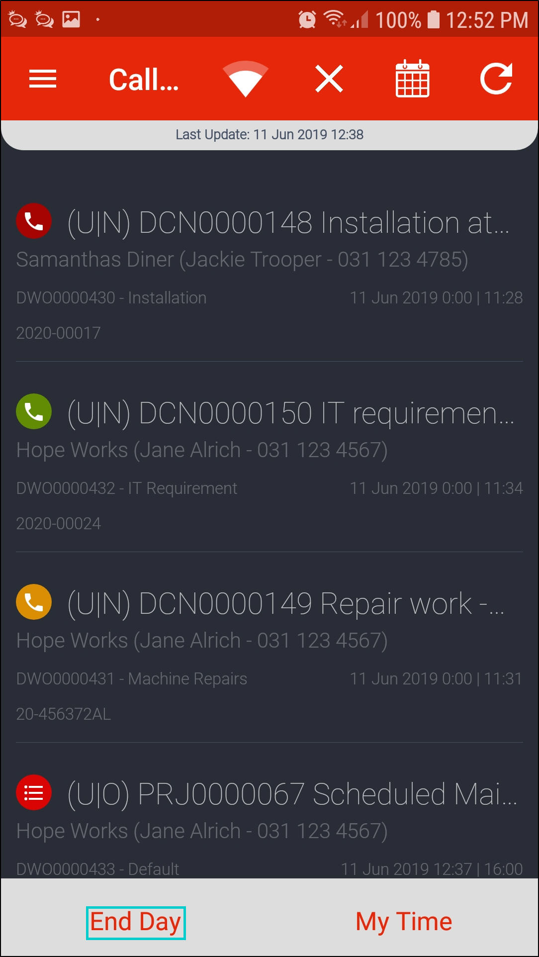- Once all calls are done for the day, click on End Day.
