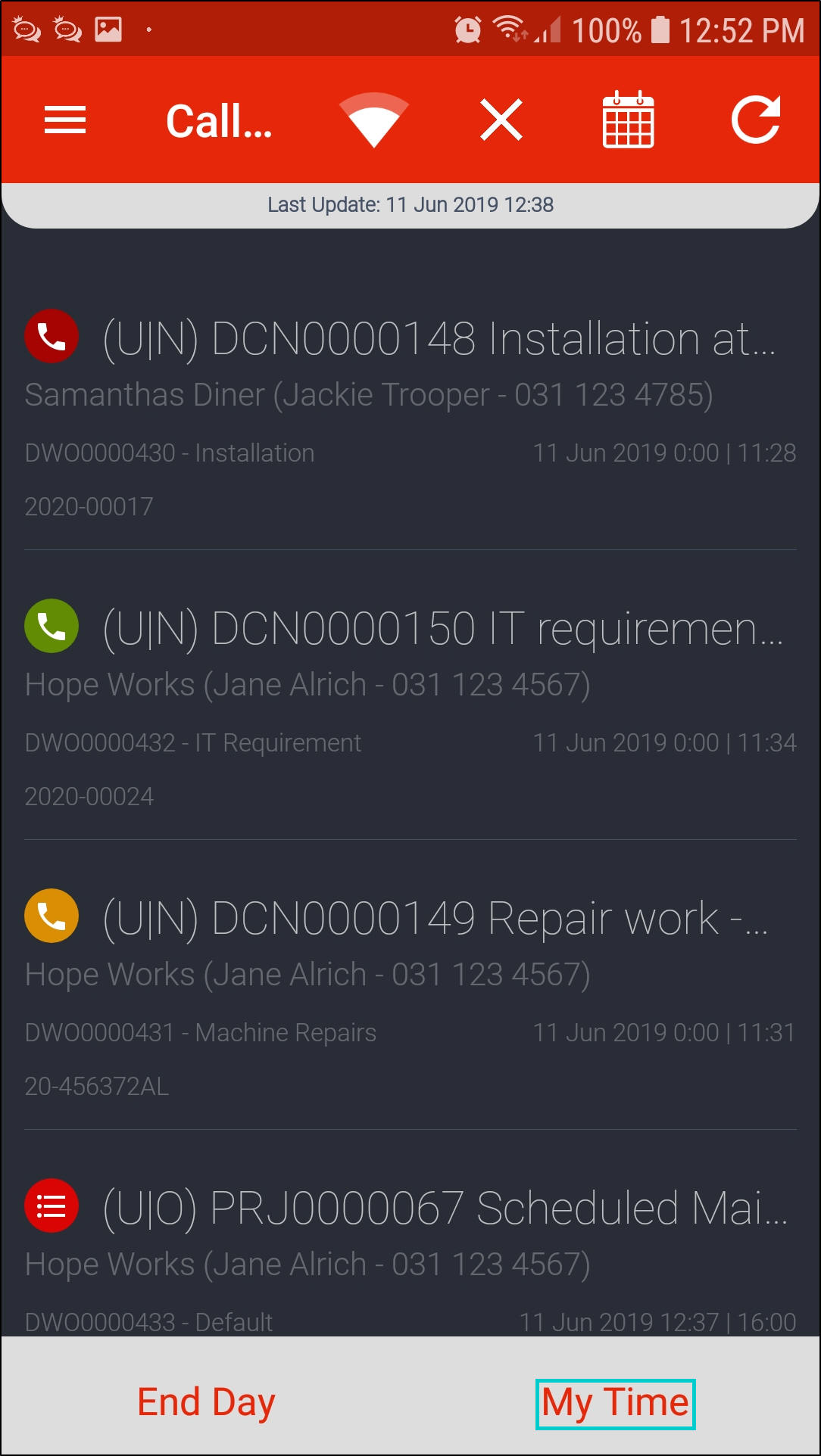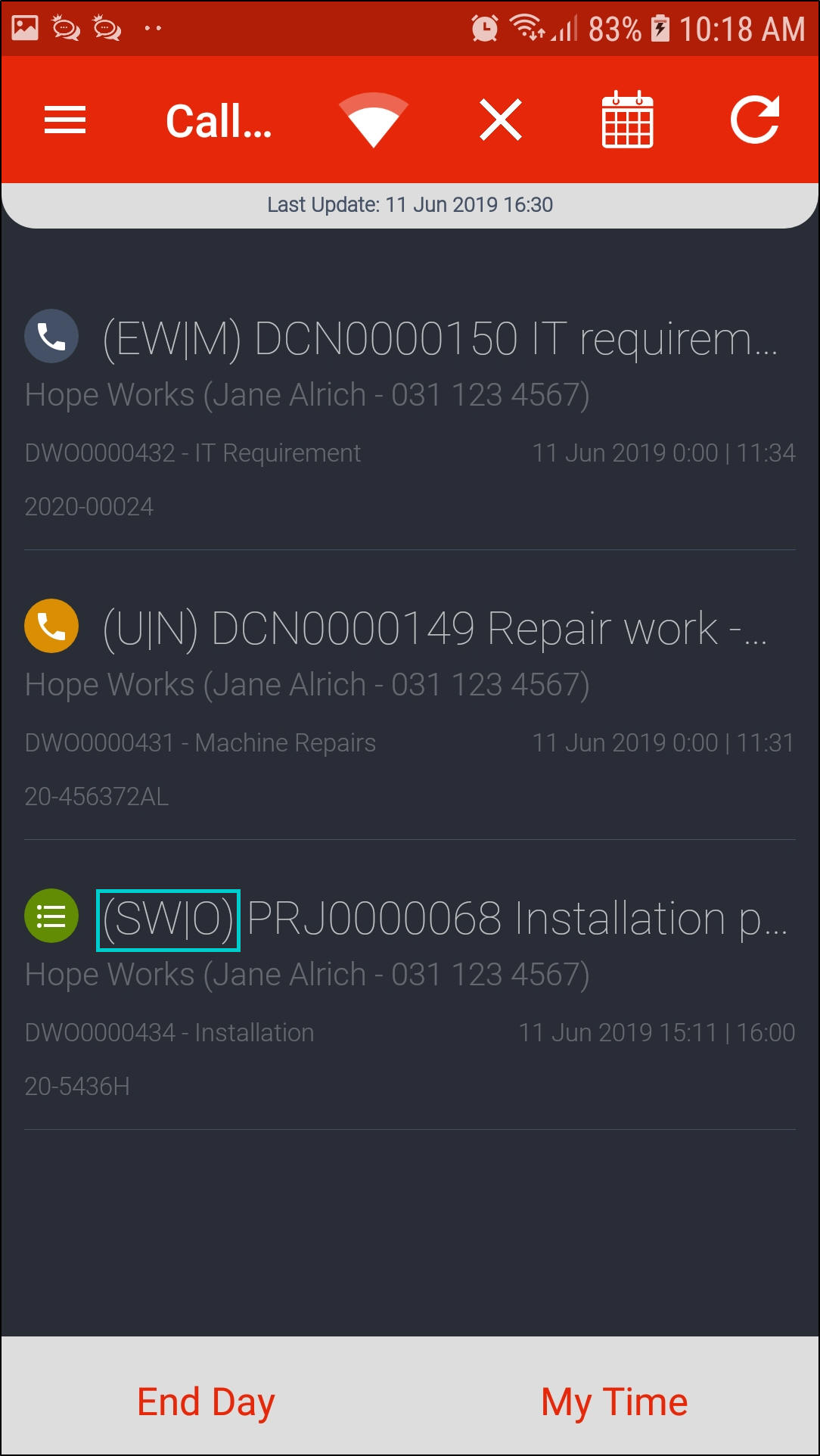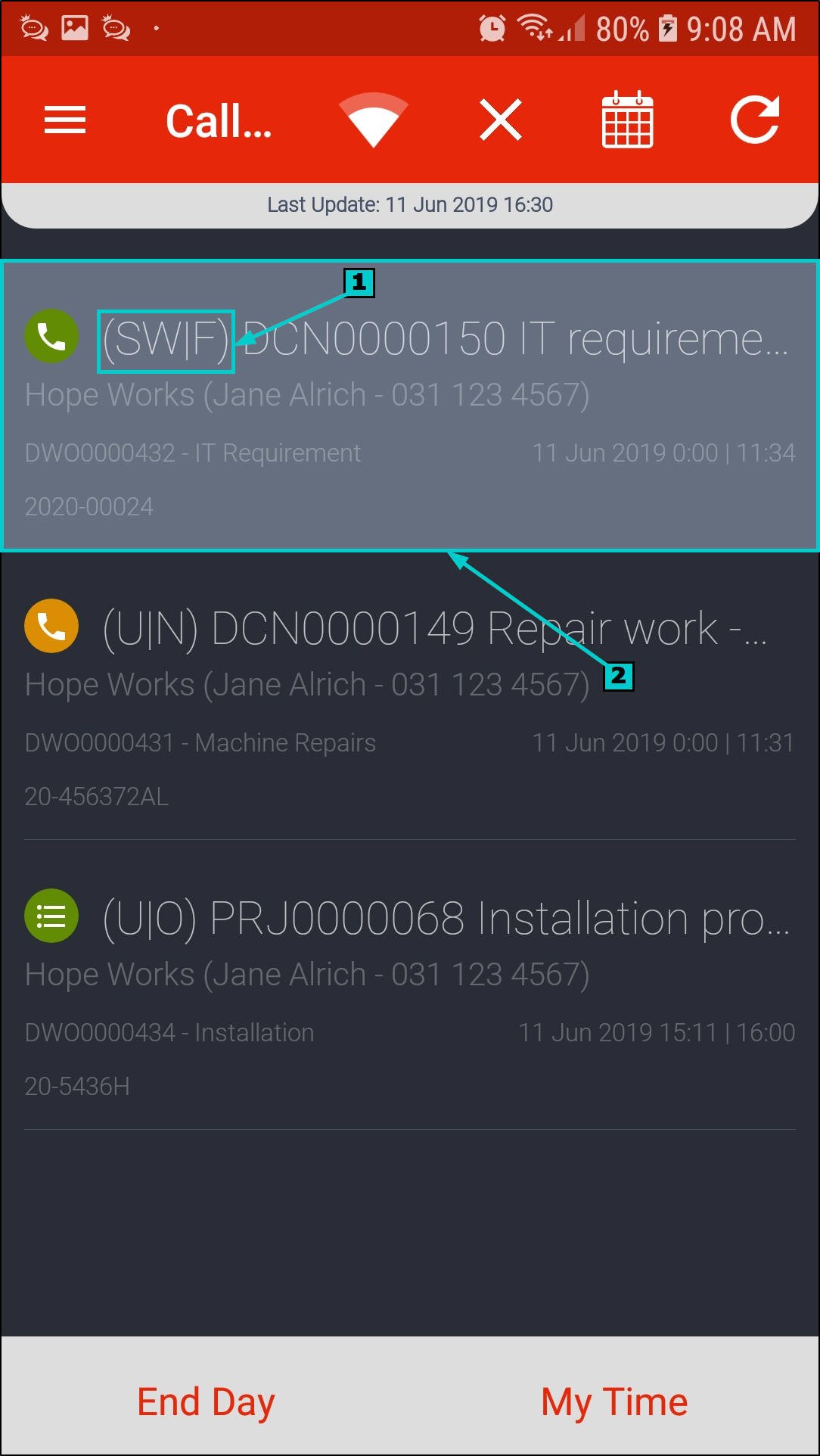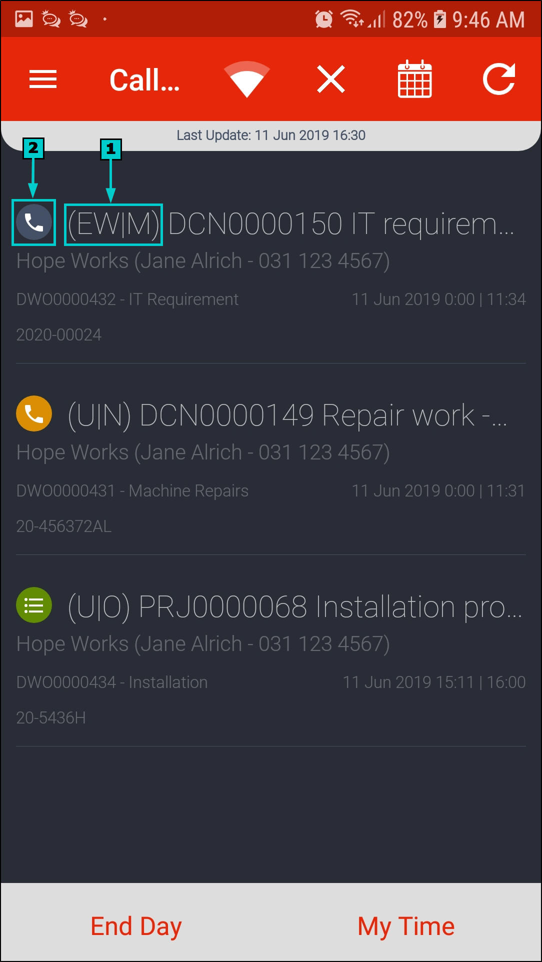 - Once all calls are done for the day, click on End Day.