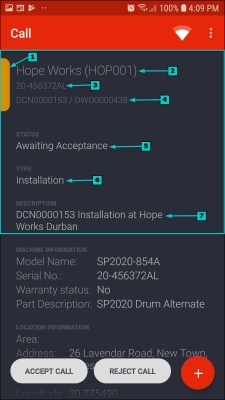 - Serial Number: This shows the serial number of the machine linked to the call / project.