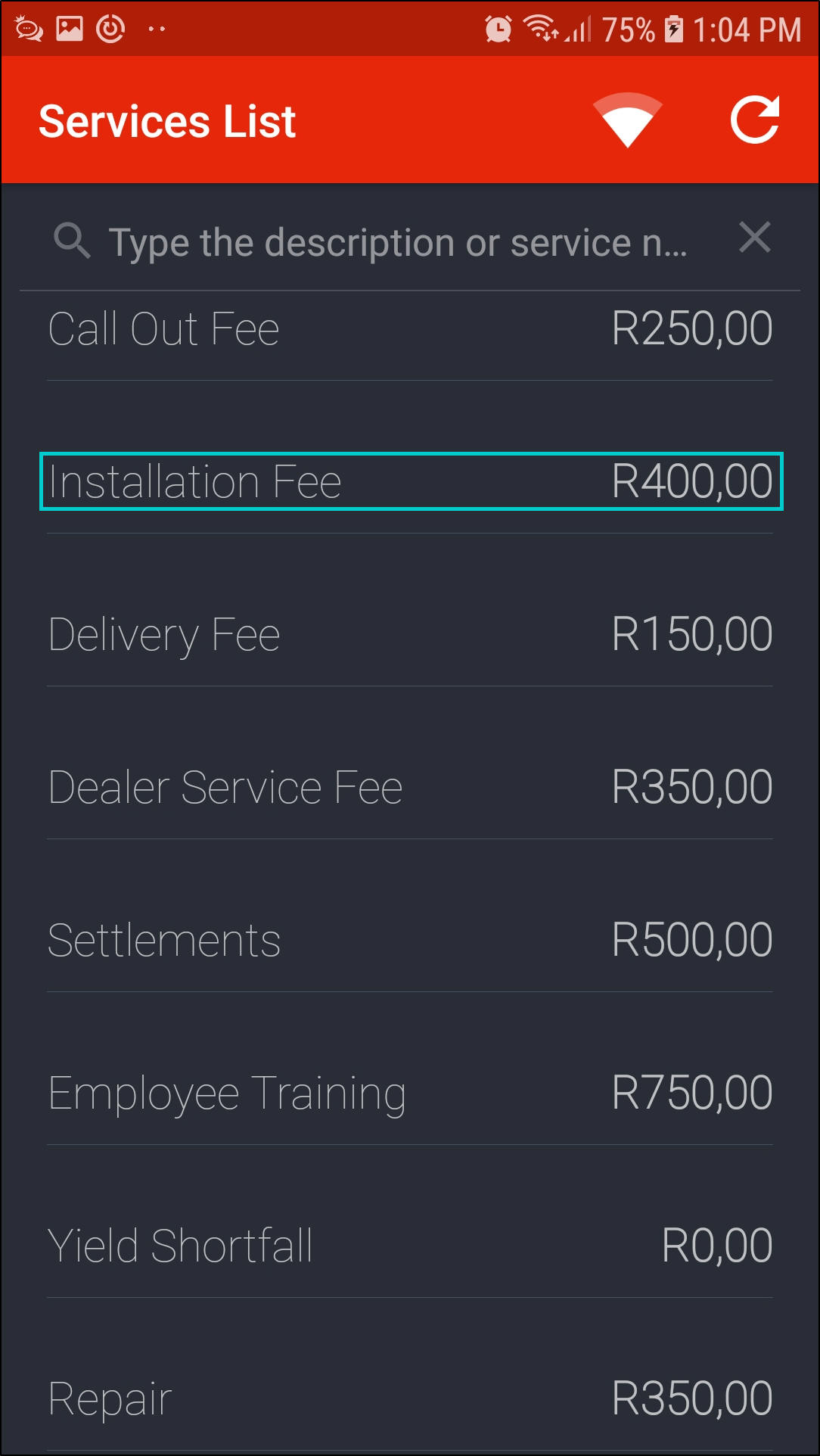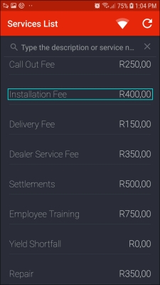 - In this image, the Installation Fee is now R400 after the services list information was updated.