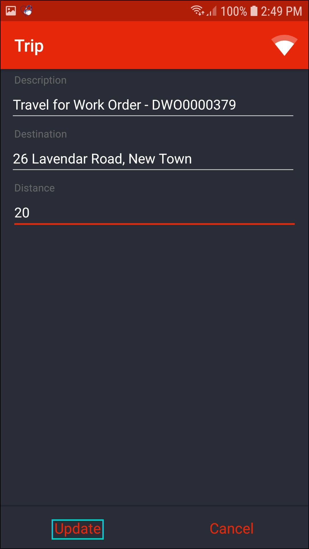 - The updated travel record will now be displayed in the Travel screen.