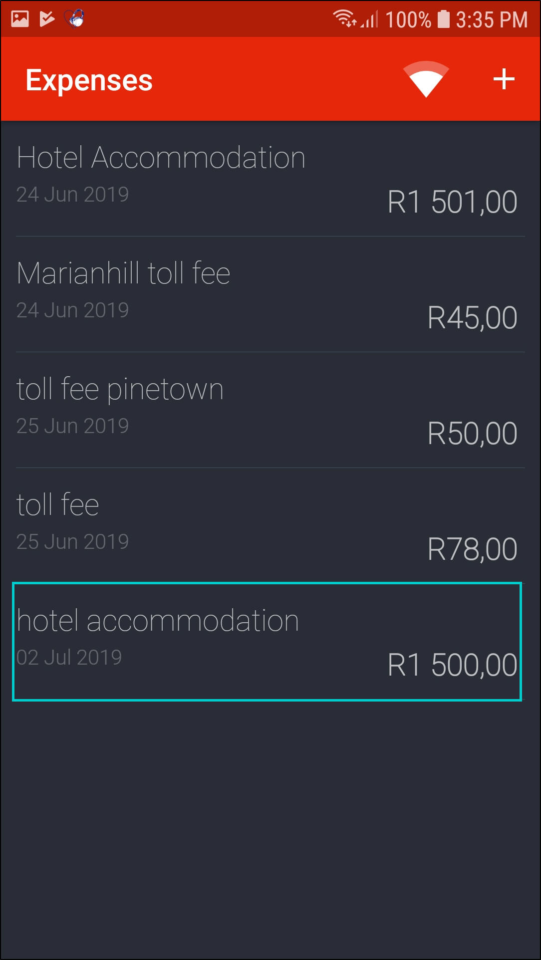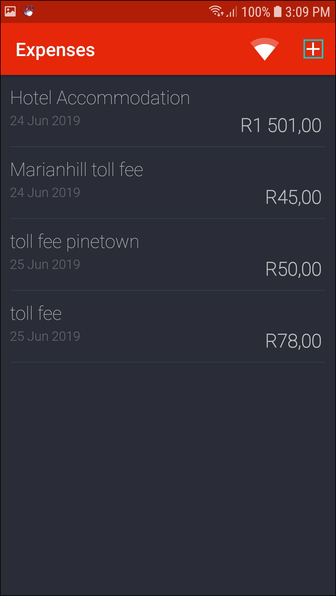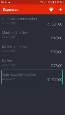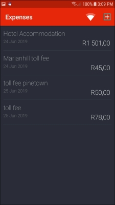 - Click on the '+' icon in the Expenses screen.
