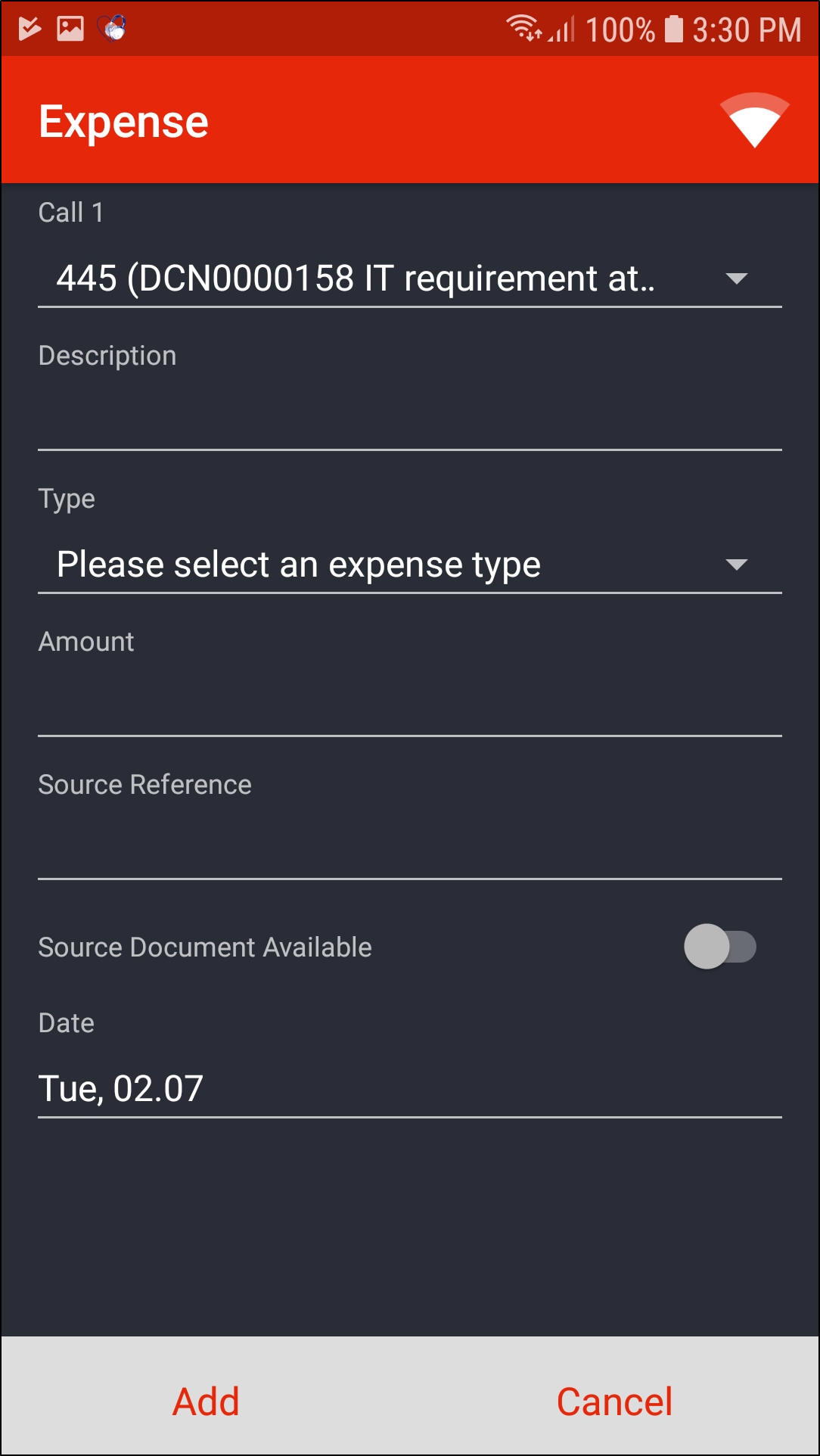 - Type: Click on the down arrow and select the relevant expense type.