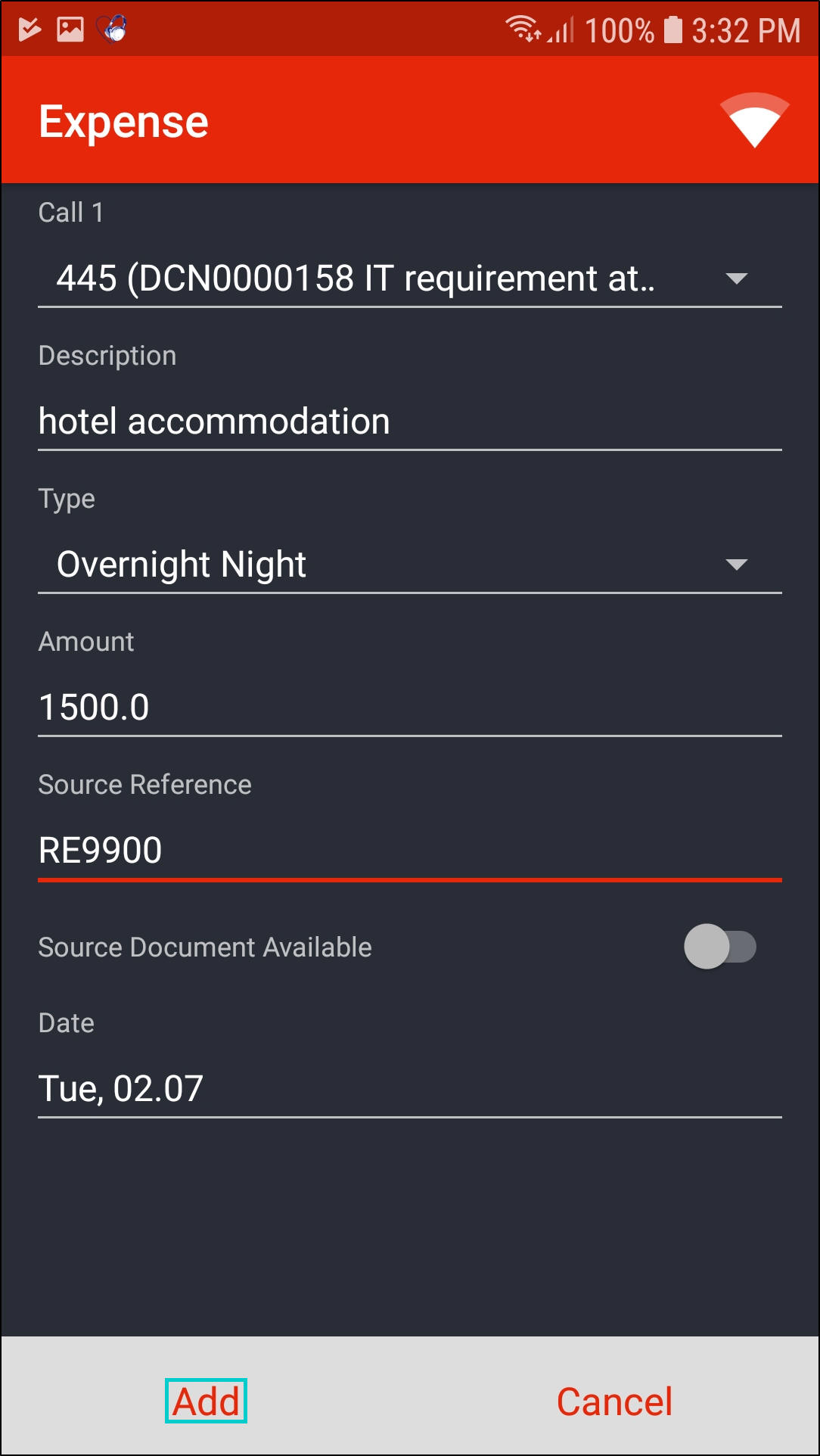 - Source Reference: Type in the Receipt Number if applicable.