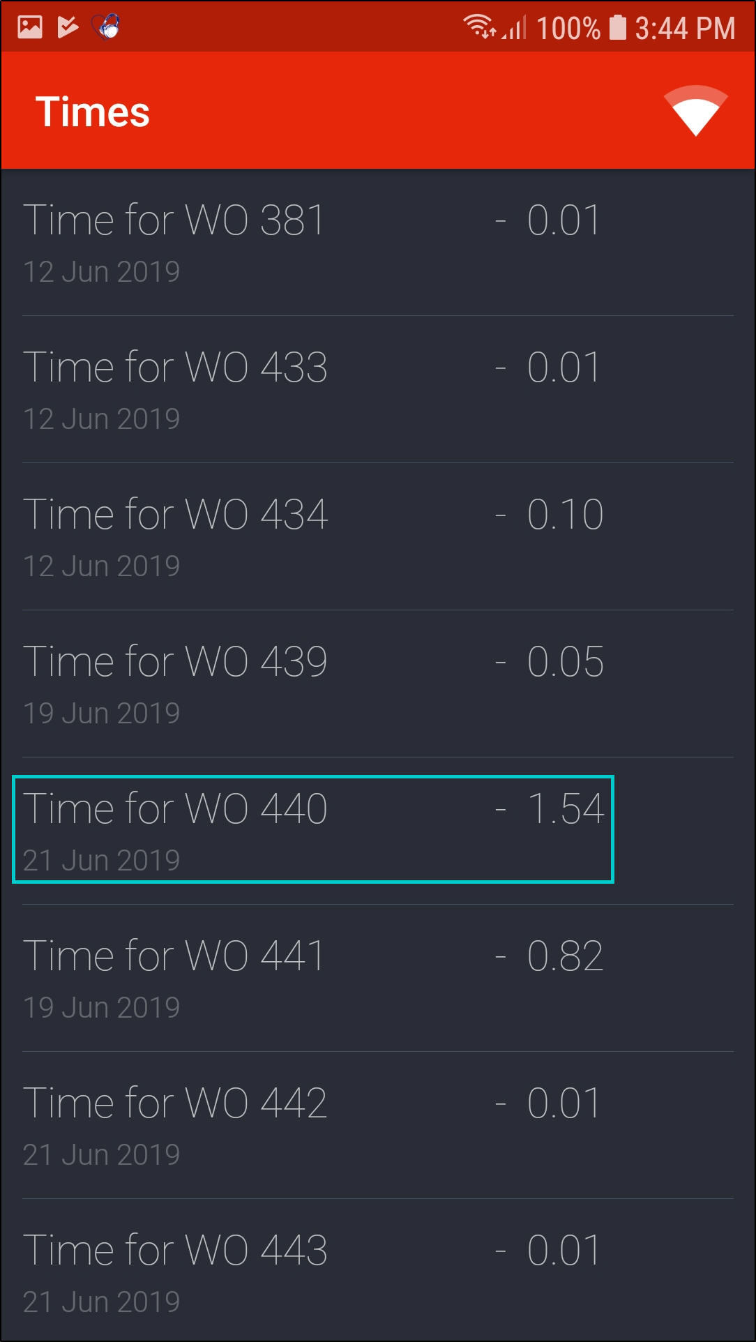 - work order number the time was booked for,