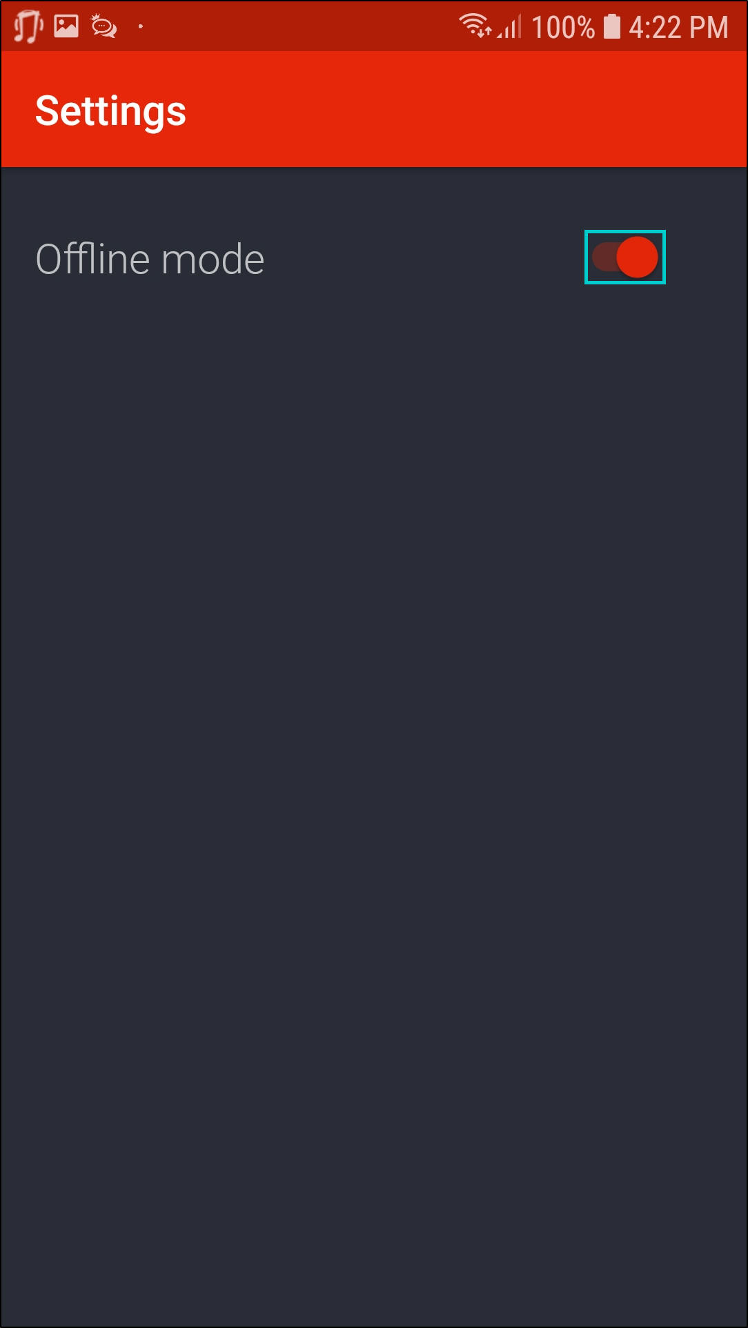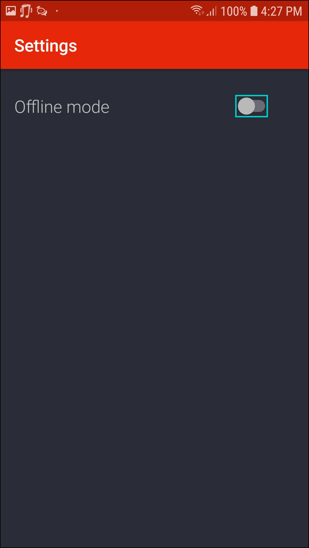 - To switch to Offline mode, move the Toggle button to your right.