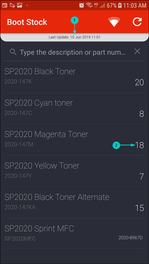 - In this image, part code 2020-147M now has a total quantity of 18 after the boot stock information was updated.