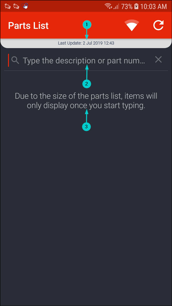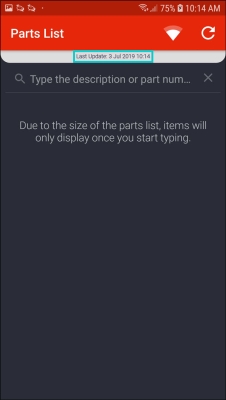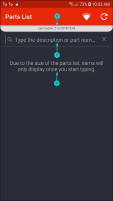 - The Search field is used to search for a part by either typing in the part description or part number.