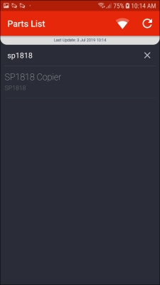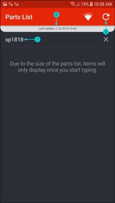 - The Parts List screen will be displayed.