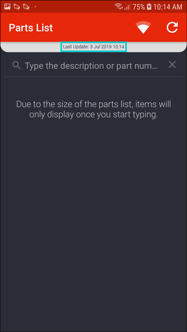 - The Last Update: [ ] will show the date and time the parts list was last updated.