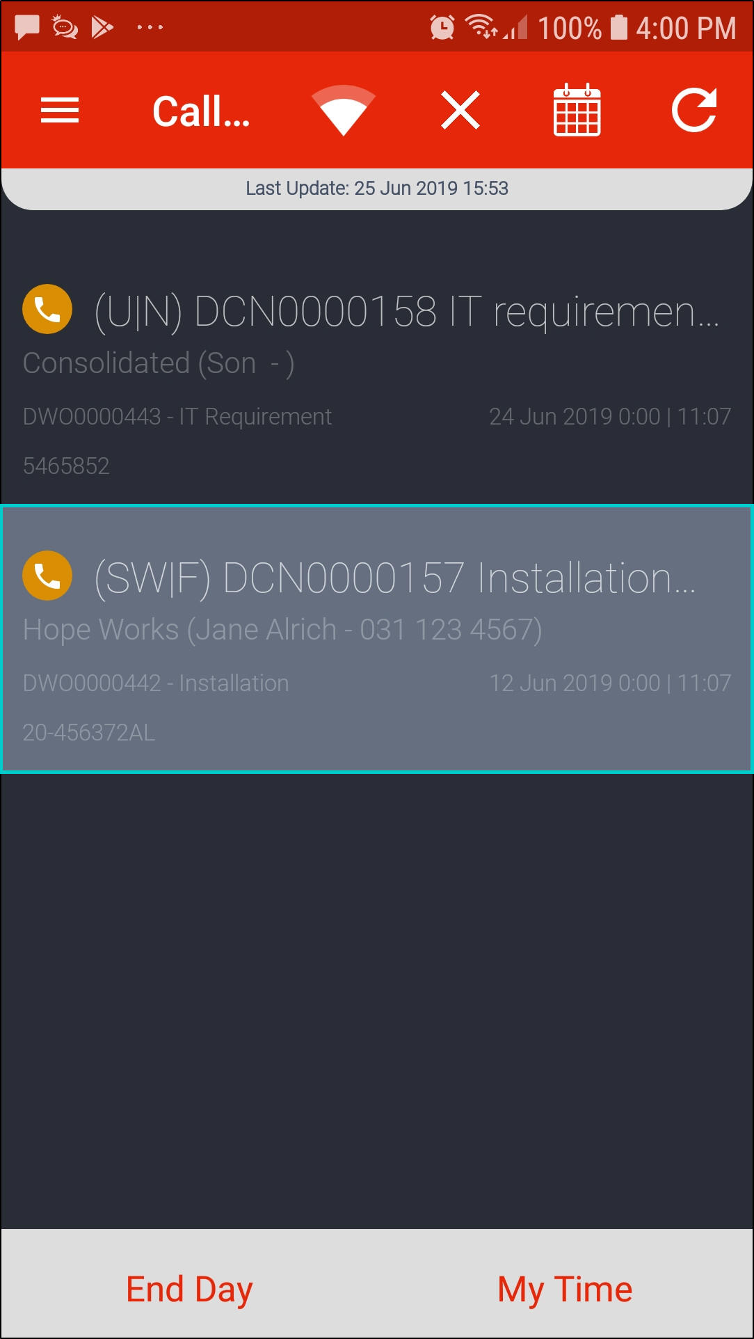 - After the replacement item has been issued, refresh your boot stock database (if stock was issued from the boot stock warehouse) and Calls List screen.