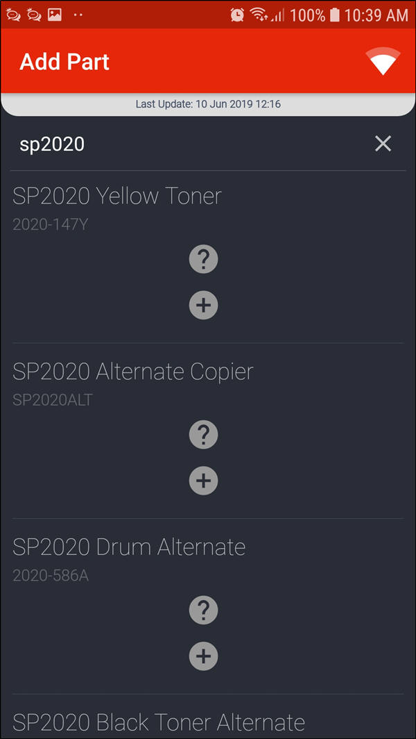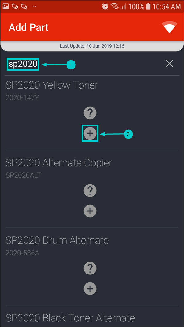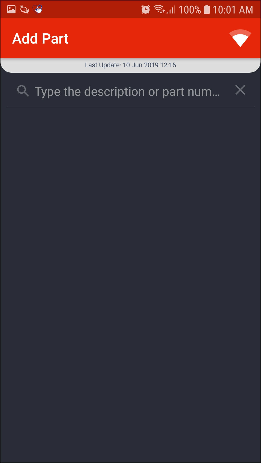 - The Add Part screen will be displayed.