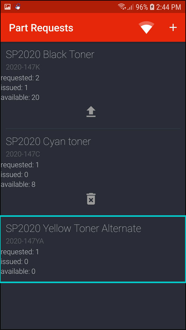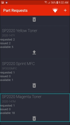 - The part request will now be displayed in the Part Requests screen.
