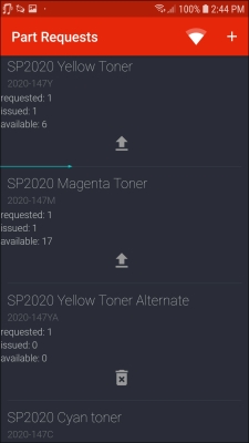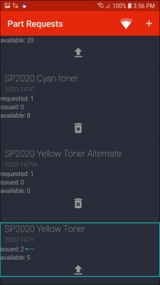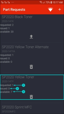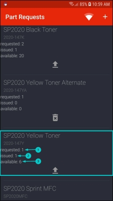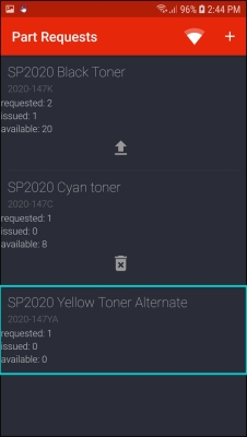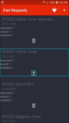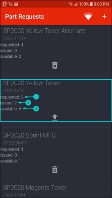 - The issued part request will be displayed in the Part Requests screen.
