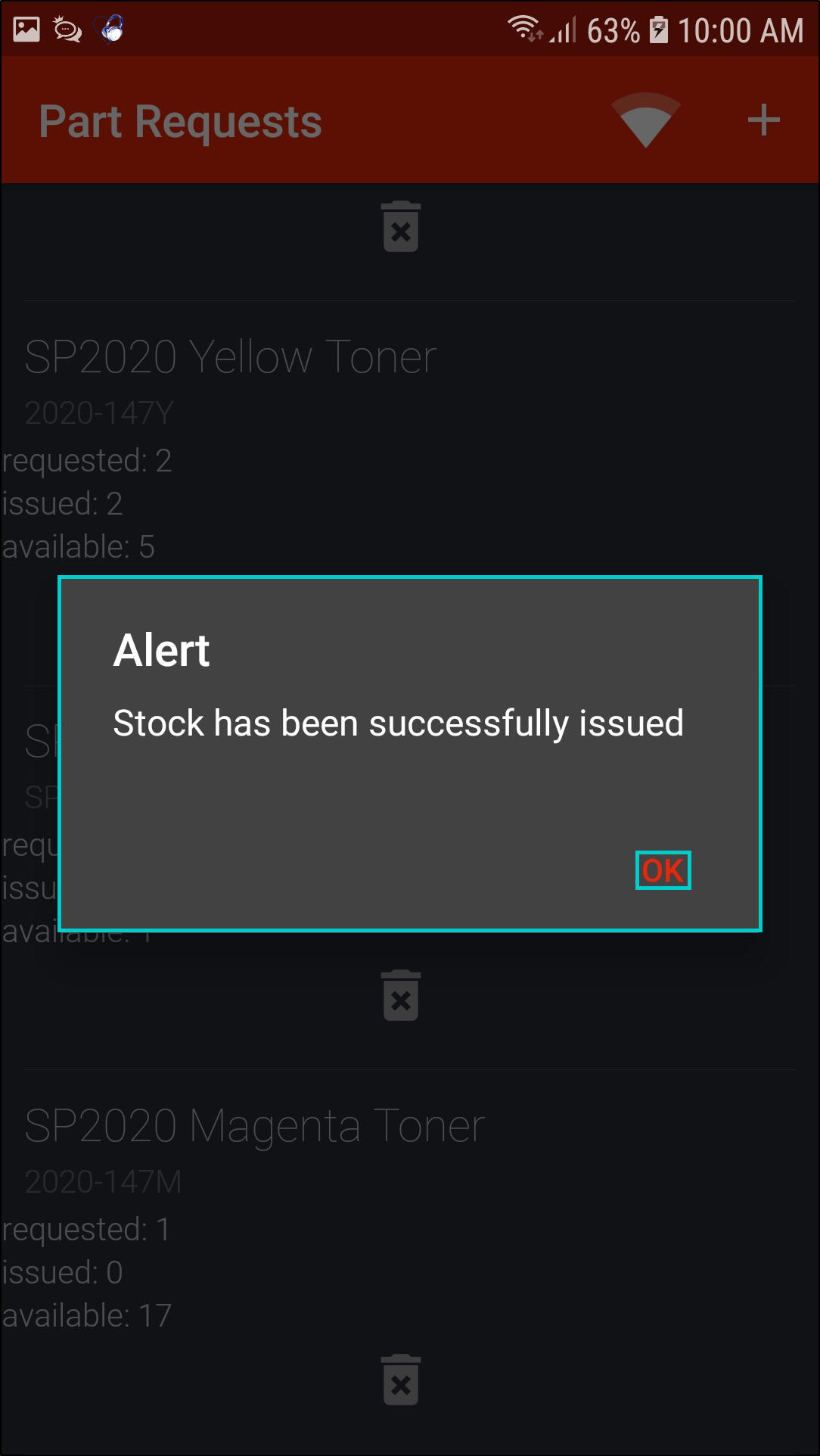 - In the Part Requests screen, click on the Delete icon on the part request you wish to delete.