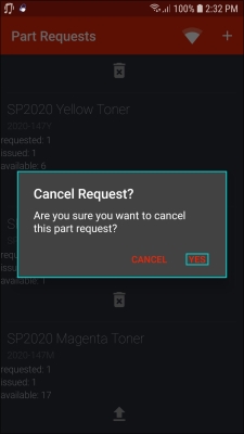 - The part request will be removed from the Part Requests screen.