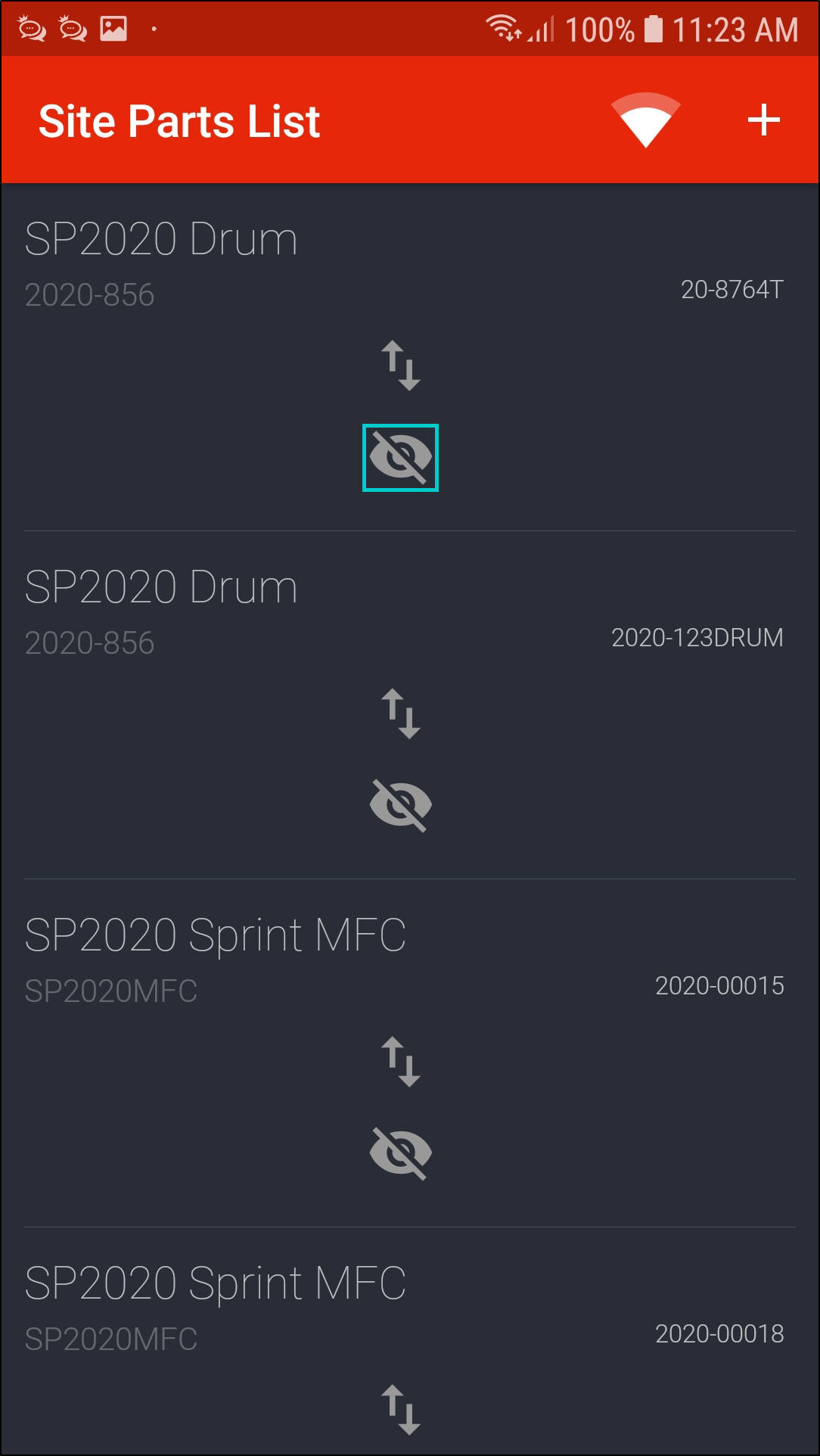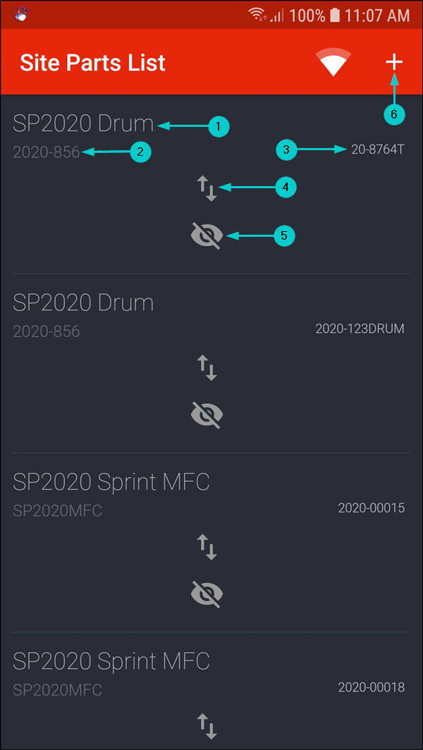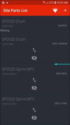 - The part will now be displayed in the Site Parts List screen.