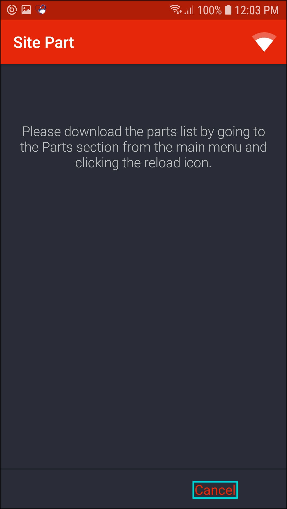 - Click on Cancel. Refresh your parts database and start the process of adding a missing part again.