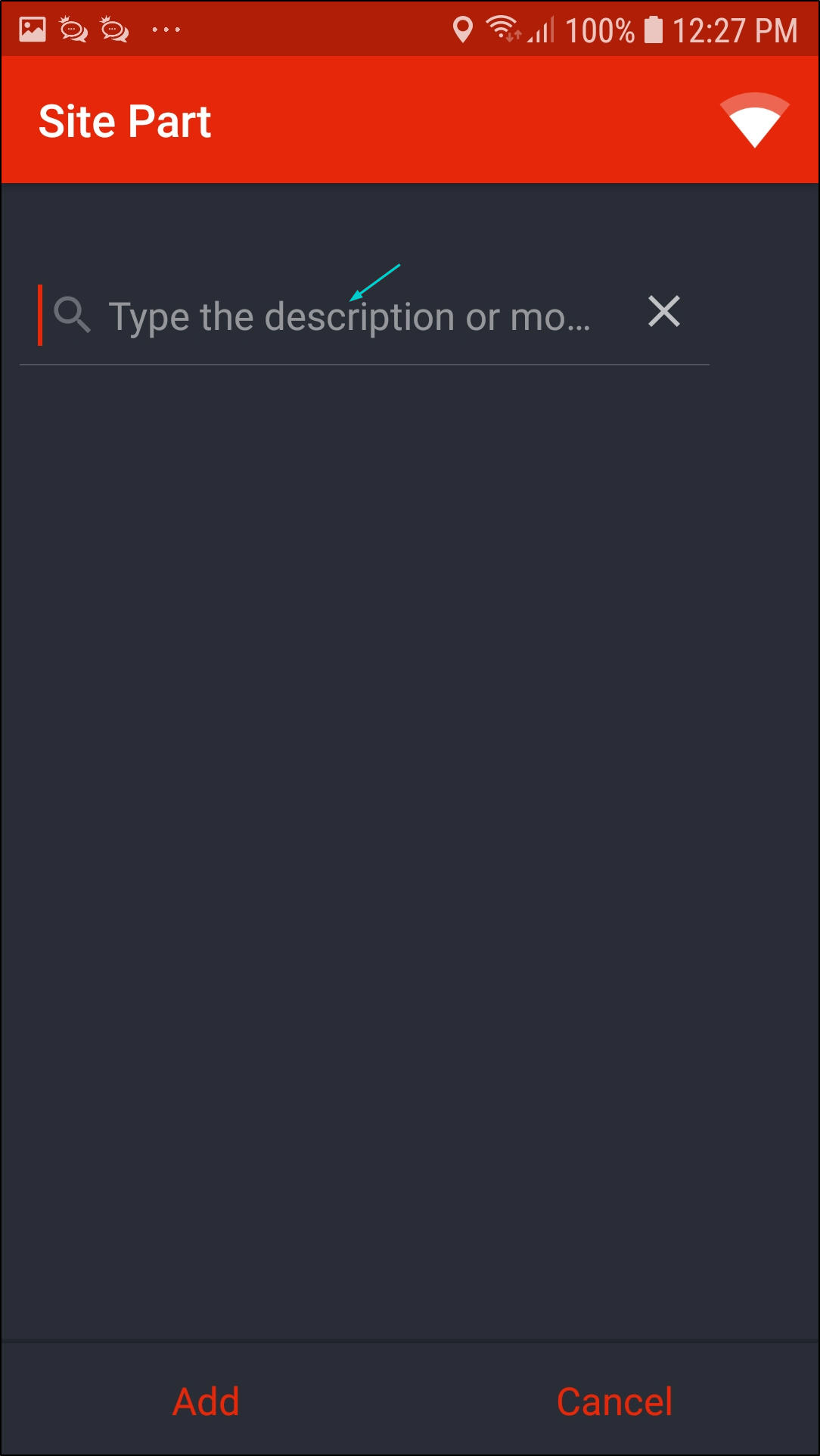 - In the Search field, type in the part description or model of the part you wish to add.