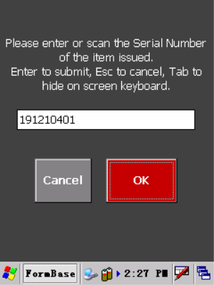- Use 'Enter' on the keypad or 'Ok' on screen to submit the serial number to the Part Request you are scanning.