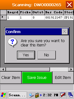 - 'Clear the Item' - this resets to selected line so that you can scan again.