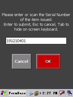 - Use 'Enter' on the keypad or 'Ok' on screen to submit the serial number to the Part Request you are scanning.